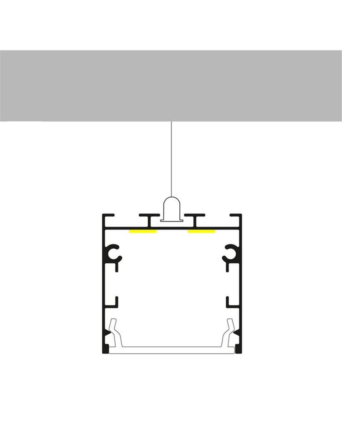 Wenn Sie eine hängende lineare Beleuchtung mit einem sorgfältigen Design montieren, ist das Profil FATE eine solide Basis, um das Gesamtbild mit Ihrem LED-Streifen von LeonLeds abzustimmen und das Projekt in Ausführung und Zubehör zu harmonisieren.