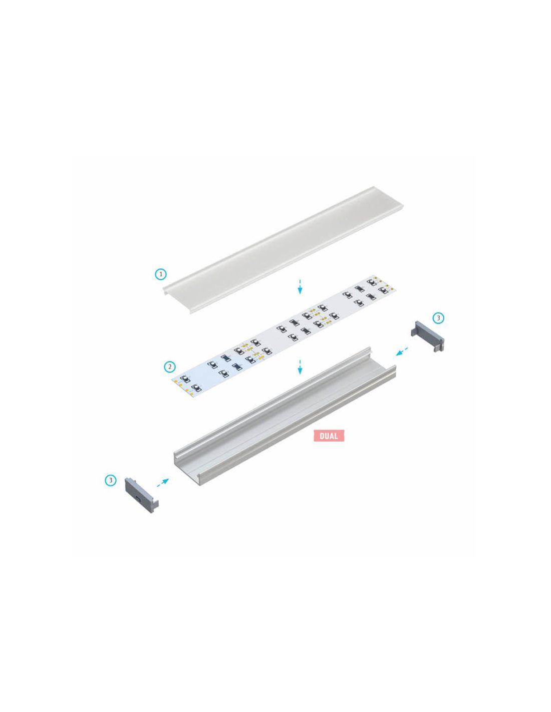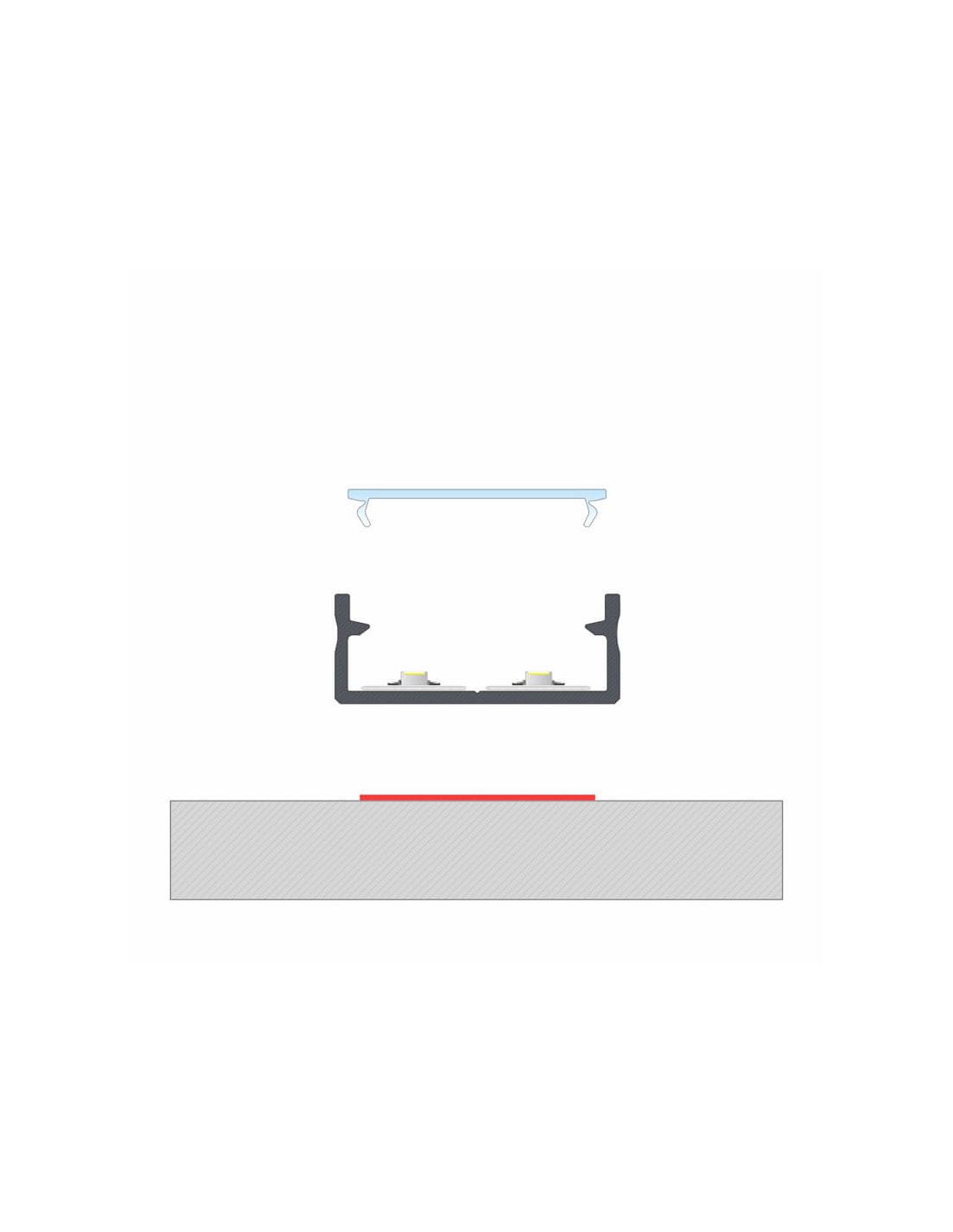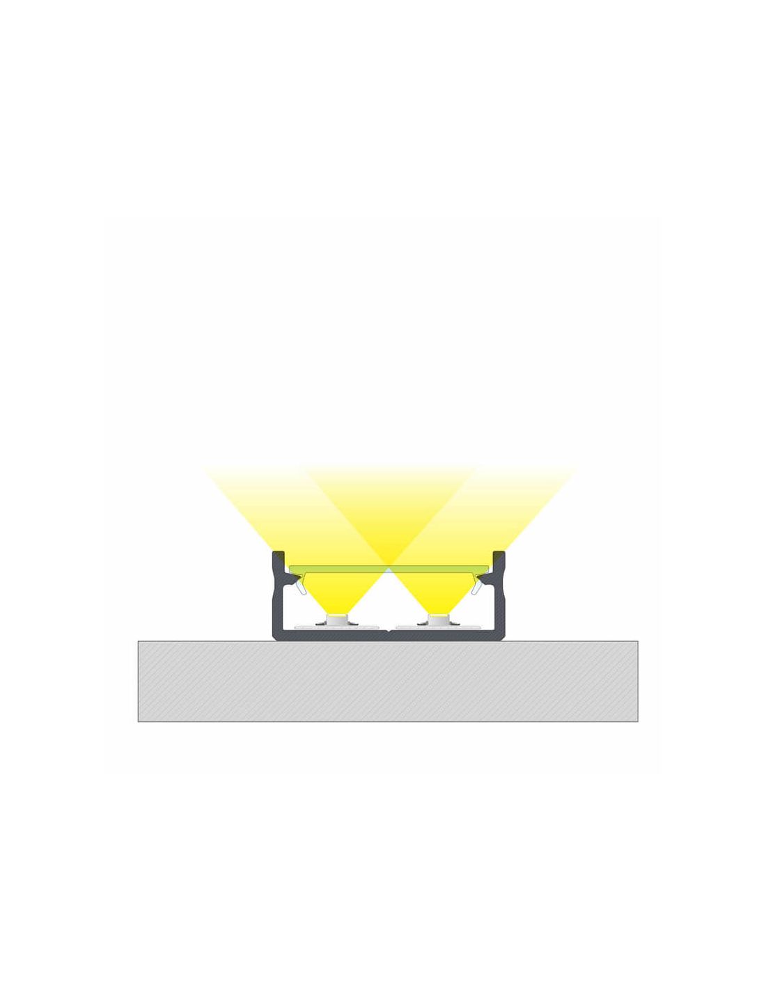 Aluminiumprofil für doppelte LED-Streifen, empfohlen für die Installation auf der Oberfläche. Wenn Sie ein Profil für die Installation von 220V LED-Streifen oder doppelten LED-Streifen suchen, ist dieses Modell 'Dual' die perfekte Wahl. Überprüfen Sie die Maße, bevor Sie kaufen.