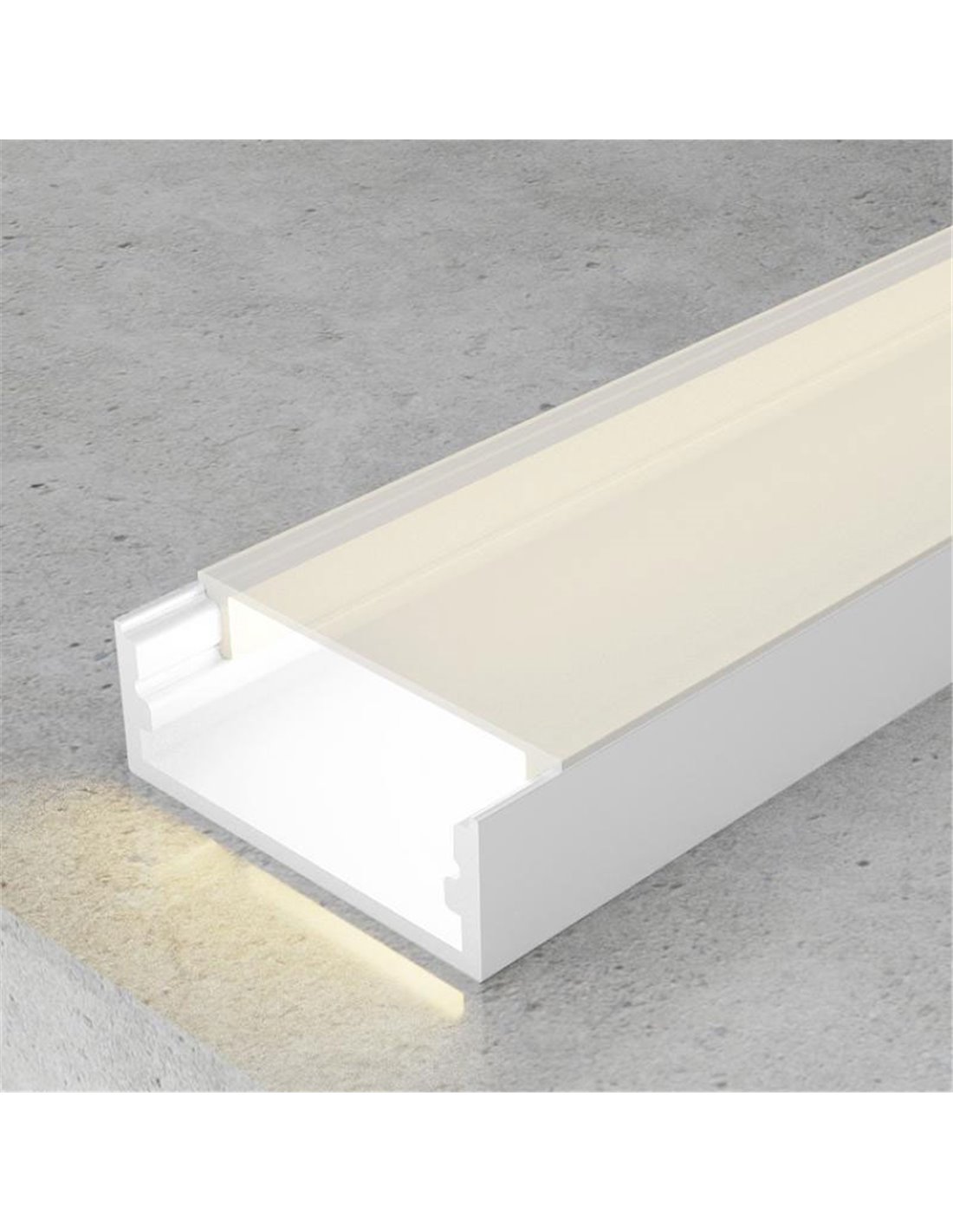 Das MINIM in weiß ist eine sehr praktische Lösung, wenn du einen LED-Streifen mit einem sauberen und integrierten Ergebnis installieren möchtest. Das weiße Lackfinish passt besonders gut zu hellen Decken und Möbeln, und der Diffusor verbessert den visuellen Komfort, indem er den LED-Punkt abmildert.