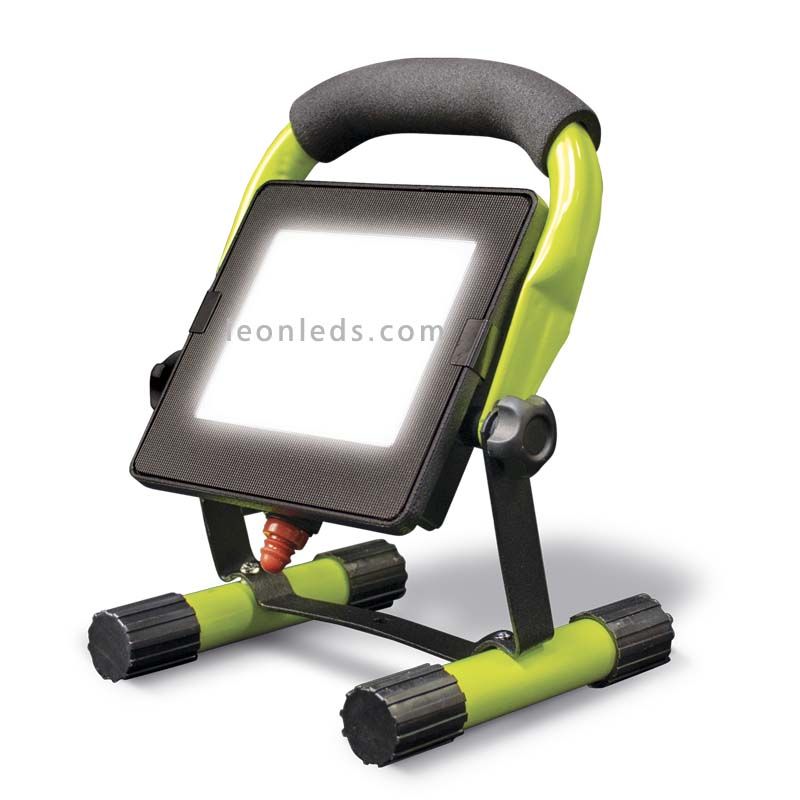 Tragbarer LED-Projektor mit einer Leistung von 20W, einer Lichtstärke von 1600Lm und einem weißen Lichtton von 5000K. Er wird mit 1,5 Metern Kabel und einem Ein-/Ausschalter auf der Rückseite des Projektors geliefert. Er hat eine Stoßfestigkeit von IK06 und einen Schutz gegen Wasser und Staub nach IP65.