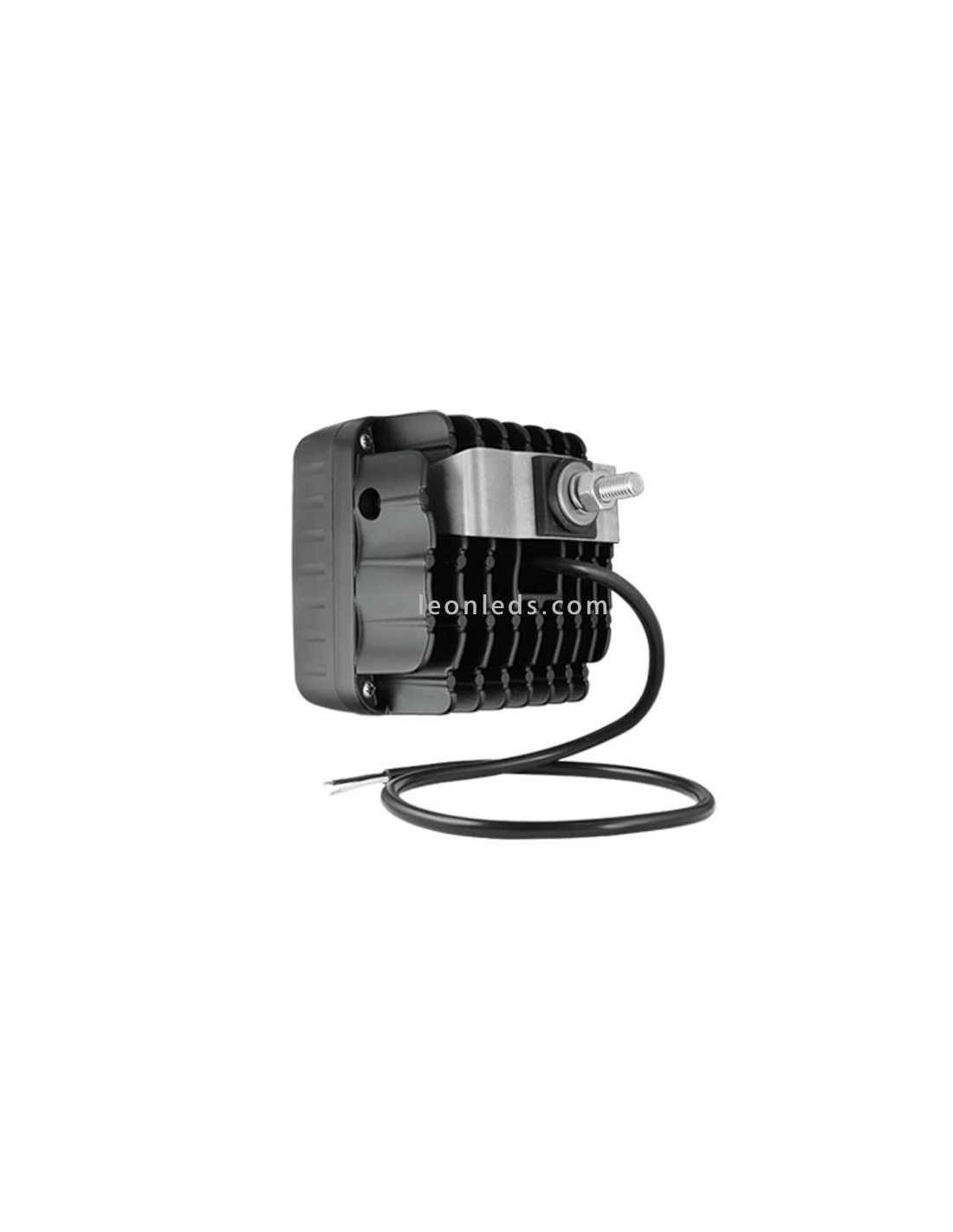 Quadratischer LED-Scheinwerfer mit Kabel und hinterer Halterung.