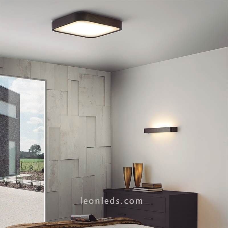 Sein quadratisches und minimalistisches Design verfügt über einen Holzrand, der den Plafond umgibt und einen weißen Opalglasdiffusor, der das Licht diffus und gleichmäßig abgibt, ohne die Augen zu belasten. Sie können diesen Nature-Applikator mit Eiche oder Wenge-Finish wählen, je nach Holzfarbe, die am besten mit Ihrer Einrichtung harmoniert, auch verschiedene Modelle kombinieren und dem Raum einen tribalartigen Look verleihen.