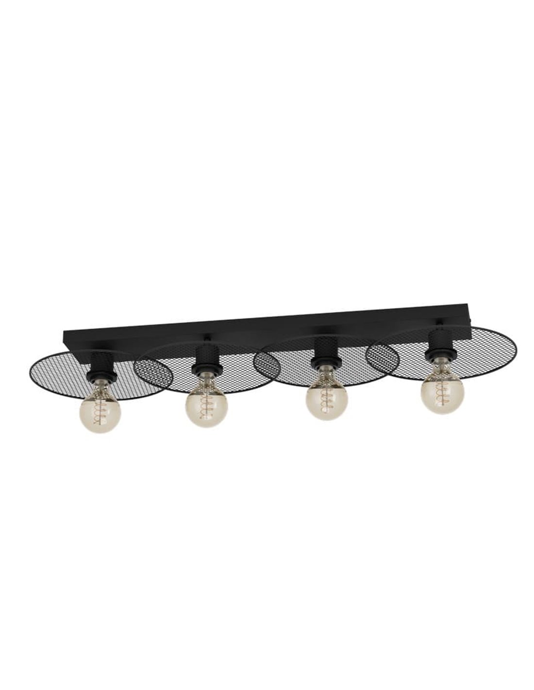 Deckenlampe EGLO IKESTON mit 4 Elementen aus schwarzem Metall und Industriedesign. Geeignet für E27-Glühbirnen. Perfekt für Küche, Wohnzimmer, Schlafzimmer oder Flur.