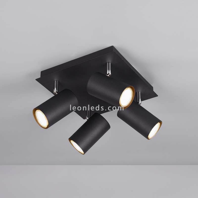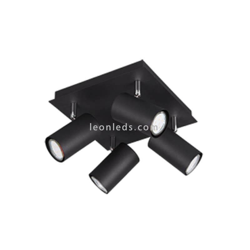 Schwarze quadratische Leiste mit 4 schwenkbaren Strahlern der Serie Marley von Trio Lighting, benötigt 4 LED-Lampen GU10 nicht enthalten, bietet ein einzigartiges modernes Design.