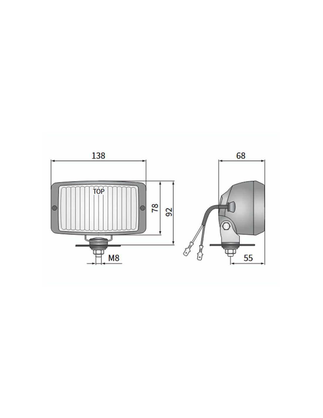 Die robuste, rechteckige Optik sorgt für optimale Sichtbarkeit auch bei widrigen Wetterbedingungen. Dieser Projektor ist E20-zertifiziert und nach IP66 geschützt, wodurch er gegen Spritzwasser und Staub beständig ist. Da er über keine integrierte Lichtquelle verfügt, können professionelle Anwender die passende H3-Lampe (Halogen oder LED) für ihre Leistungs- und Farbtemperaturanforderungen auswählen.