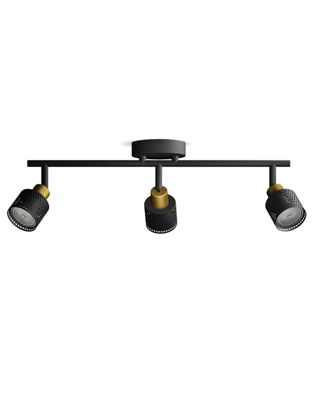Regler mit 3 NIALL-Spotlights im perforierten Industriedesign, schwarz und Messing, 3xGU10 (Nicht inkl.) - Verleihe deinem Zuhause einen modernen und eleganten Akzent. Inklusive ClickFix-System für eine sichere und einfache Installation.