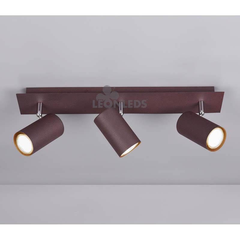 Deckenleiste mit 3 verstellbaren Strahlern in Rostfarbe aus der Marley-Serie von Trio Lighting. Es handelt sich um eine Innenraum-Deckenleuchte mit einer Metallstruktur, die über 3 verstellbare Strahler in derselben Farbe verfügt, die es uns ermöglicht, das Licht dank ihres Drehwinkels von 330º zu lenken.