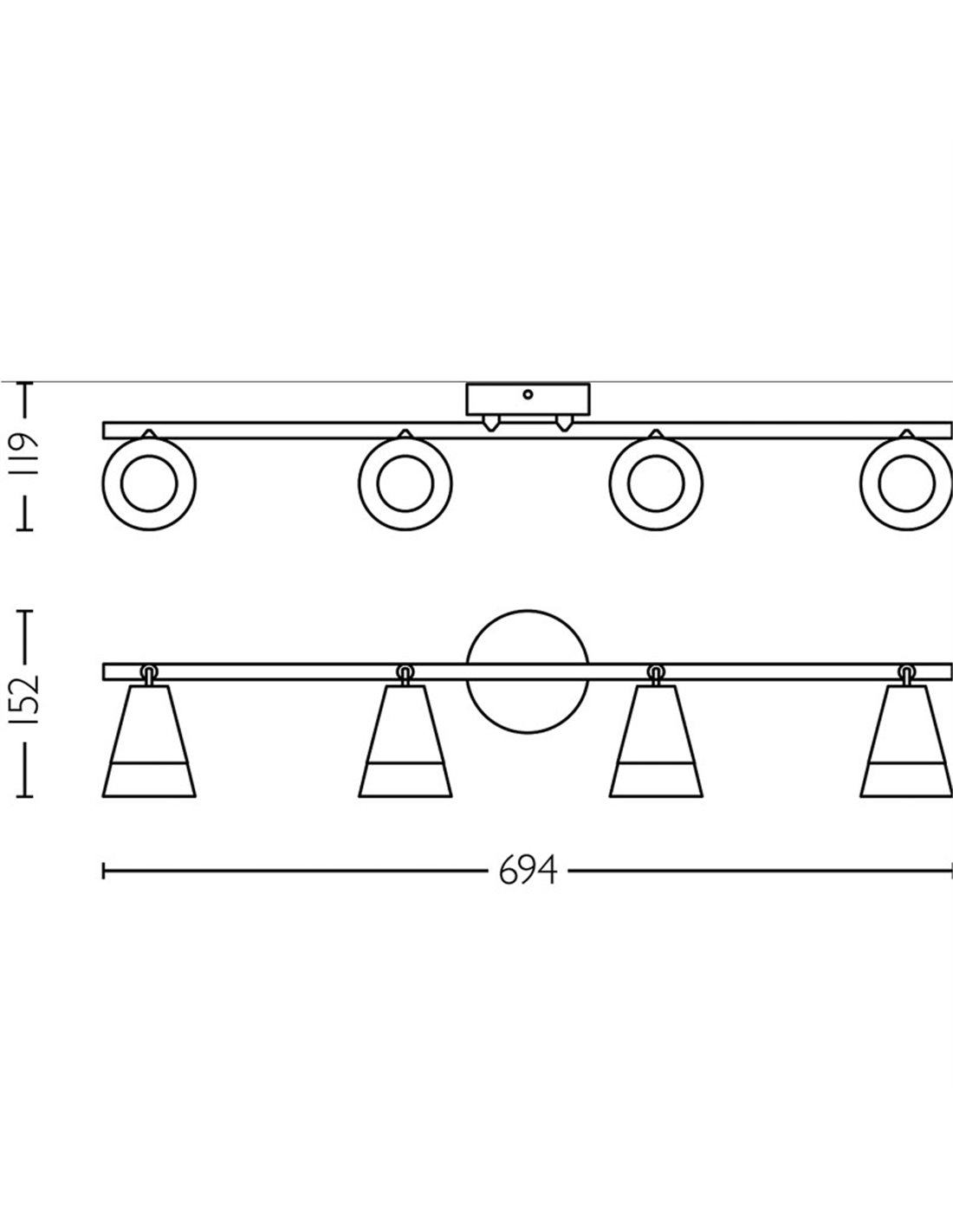 Eigenschaften der Reglette mit 4 Strahlern CLEFT