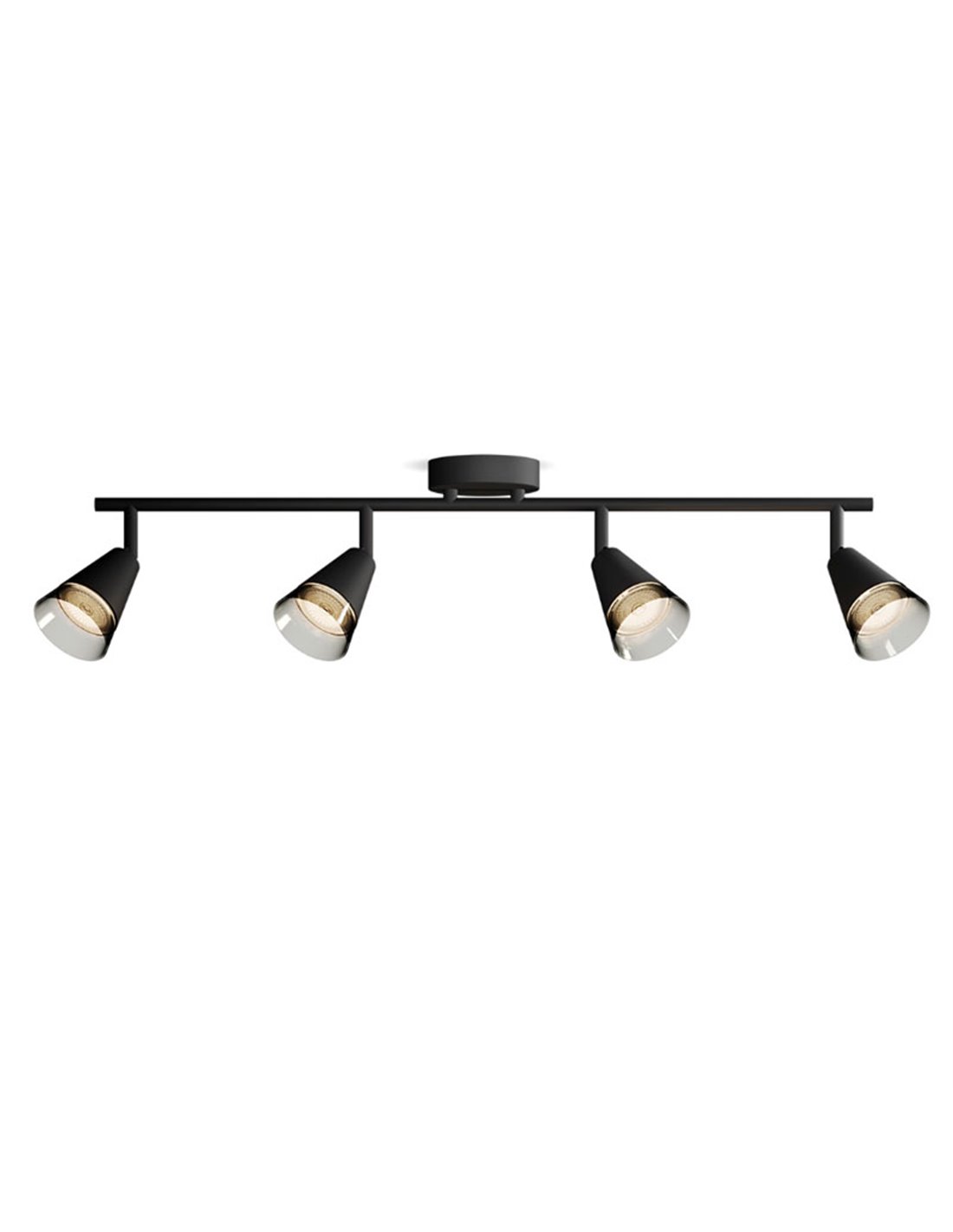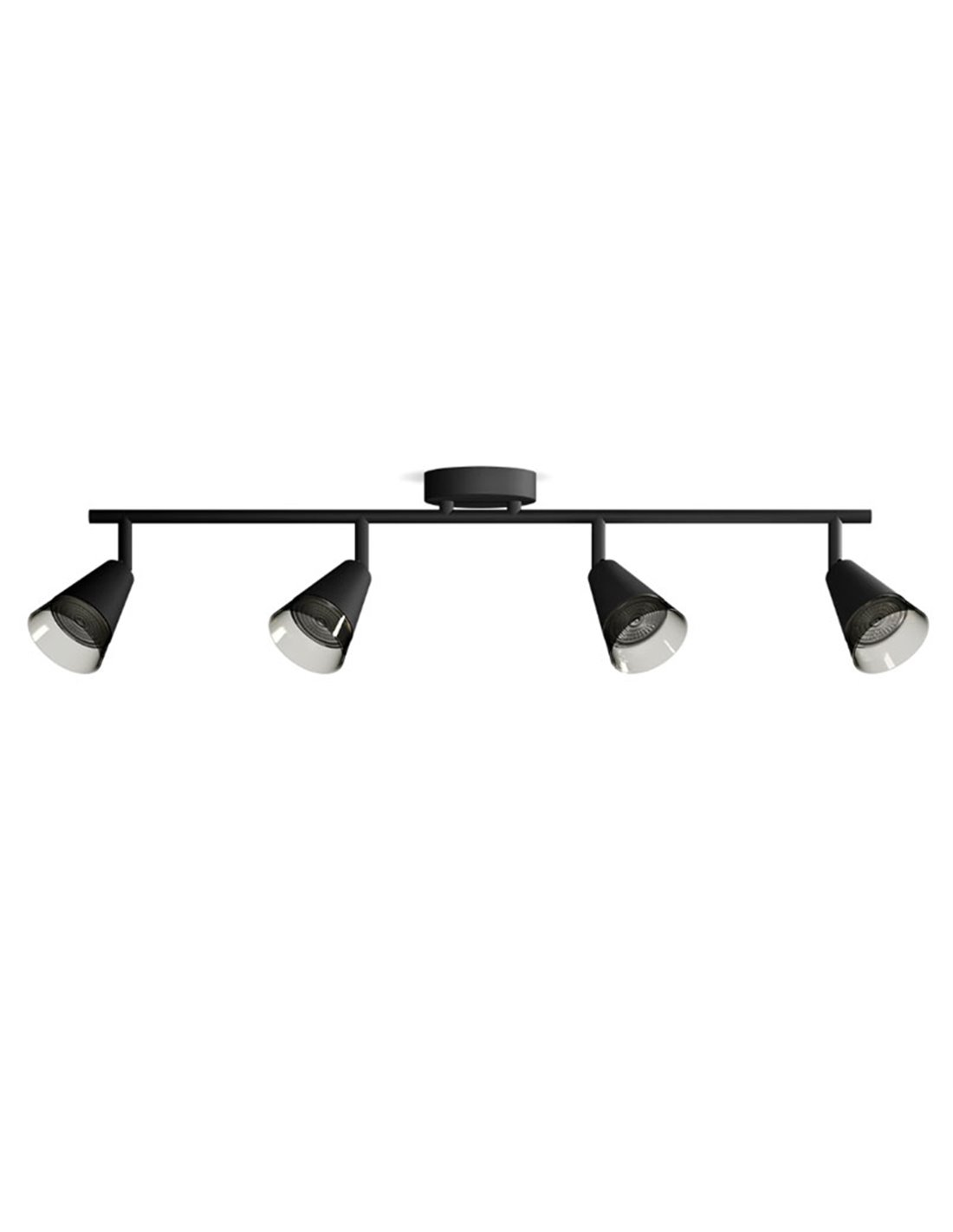 Reglette mit 4 Strahlern CLEFT in Kegelform, Design aus schwarzem Glas. Kompatibel mit 4xGU10 (Nicht enthalten). Schnelle Installation mit ClickFix.