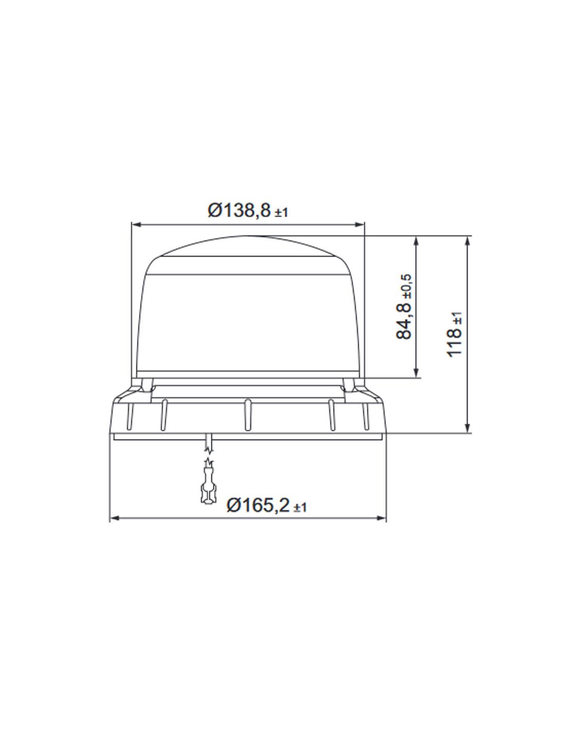 Zugelassener Rotierender LED RotaLED 360º Compact geeignet für 12V und 24V, seine Befestigung erfolgt fest mit 3 Schrauben und für den Anschluss enthält er 15 cm Kabel mit flachem Stecker. Dieser rotierende LED hat einen Verbrauch von 10W und ist mit 16 Hochleistungs-LEDs ausgestattet, geprüft nach ADR/GGVS und mit Zulassung R10/ECE-R65 mit einem Schutzgrad von IP6K7/IP6K9K und sehr stoßfest.