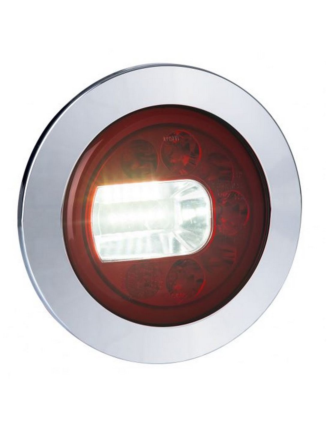 Rücklicht LED LUNA mit Funktionen von Neonposition, Nebelscheinwerfer und Rückfahrlicht, entwickelt für professionelle Installationen an Nutzfahrzeugen und Anhängern. Stromversorgung 12/24 V, wasserdichte Konstruktion IP68 und hochzuverlässige LED-Optik.