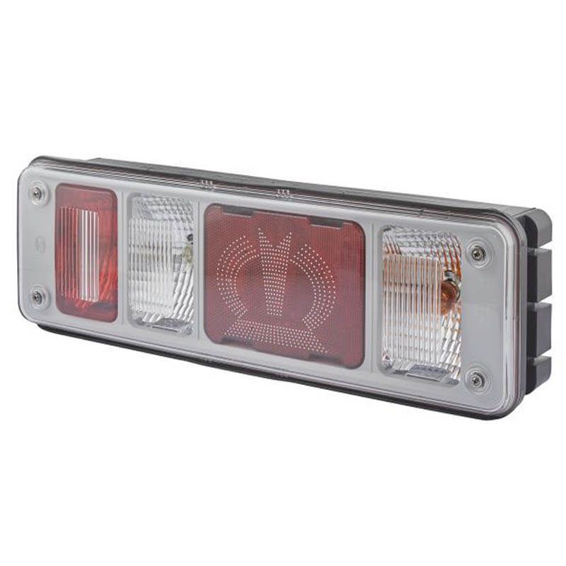 Hybrid-Rücklicht für Krone von der Marke Hella, enthält das Krone-Logo und ist für 24V Voltagen geeignet. Dieses Rücklicht-Modell ist Originalersatzteil, es sind keine Modifikationen erforderlich. Die Positionsfunktion ist mit LED-Technologie ausgestattet, die restlichen Funktionen enthalten die entsprechende Glühbirne.