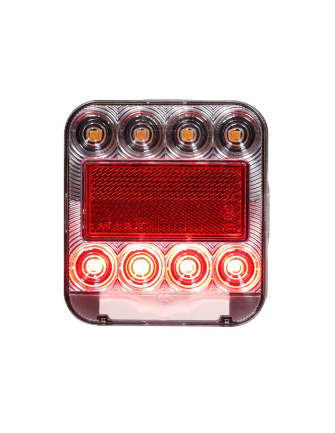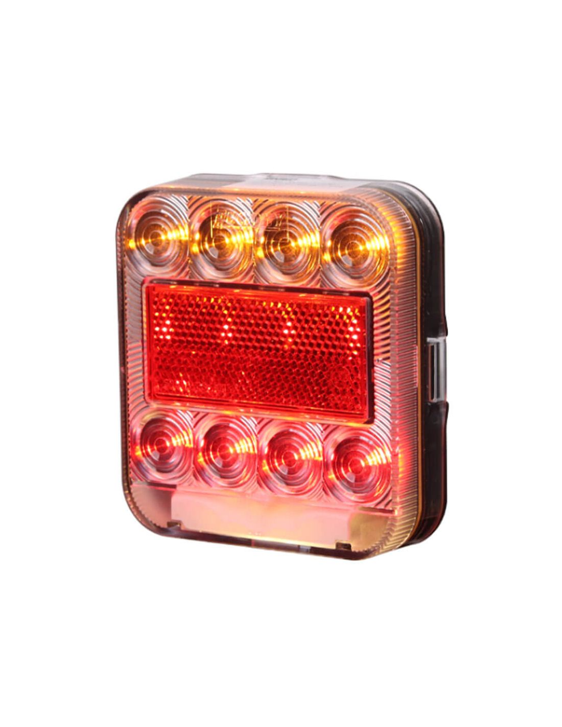 Das quadratische LED Rücklicht von Lucidity bietet eine robuste und effiziente Lösung zur Verbesserung der Sichtbarkeit und Sicherheit auf der Straße, die sich an eine breite Palette von Fahrzeugen und Einsatzbedingungen anpasst. Sein hermetisches Design und der geringe Energieverbrauch machen es zur idealen Wahl für landwirtschaftliche und Anhängeranwendungen.
