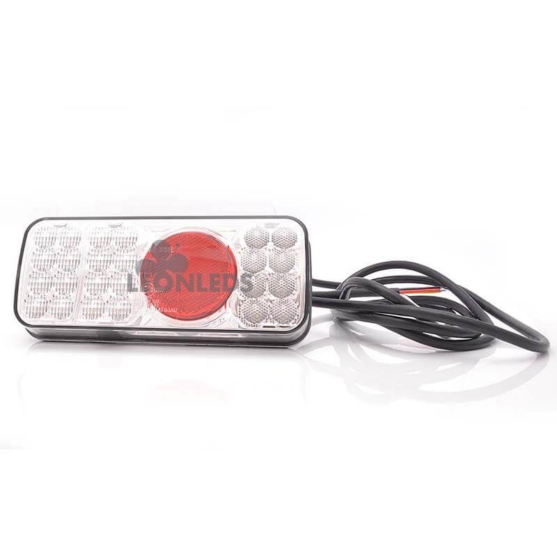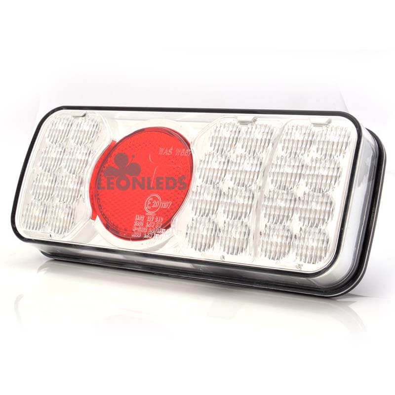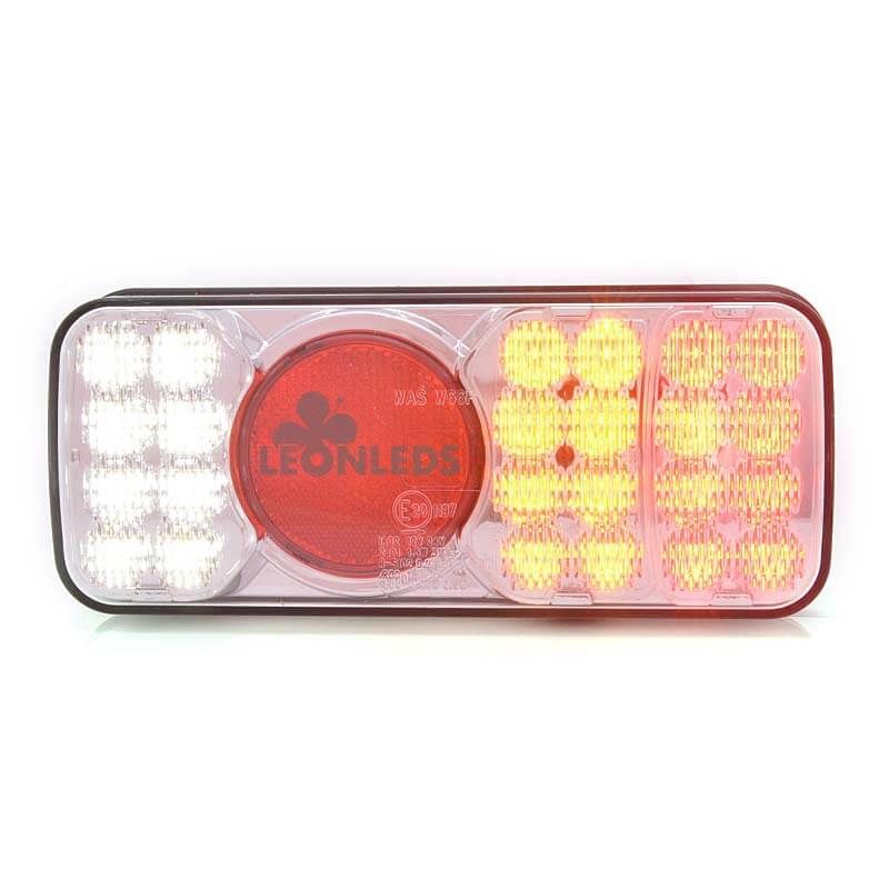 Im Rücklicht LED Rechteckig auf der rechten Seite haben wir die folgenden Funktionen: Positionsleuchte, Blinker, Bremslicht, Reflektor und Rückfahrlicht.