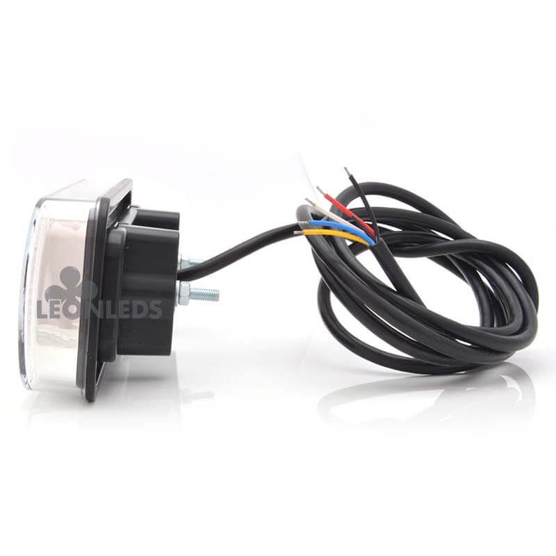 Rücklicht LED Rechteckig geeignet für 12-Volt- und 24-Volt-Installationen mit 4 Funktionen, mit 2 Meter Kabel, kann ohne die Halterungen, die eine Breite von nur 4 cm bieten würden, oder mit den 2 Halterungen installiert werden, die eine Breite von 6,1 cm haben.