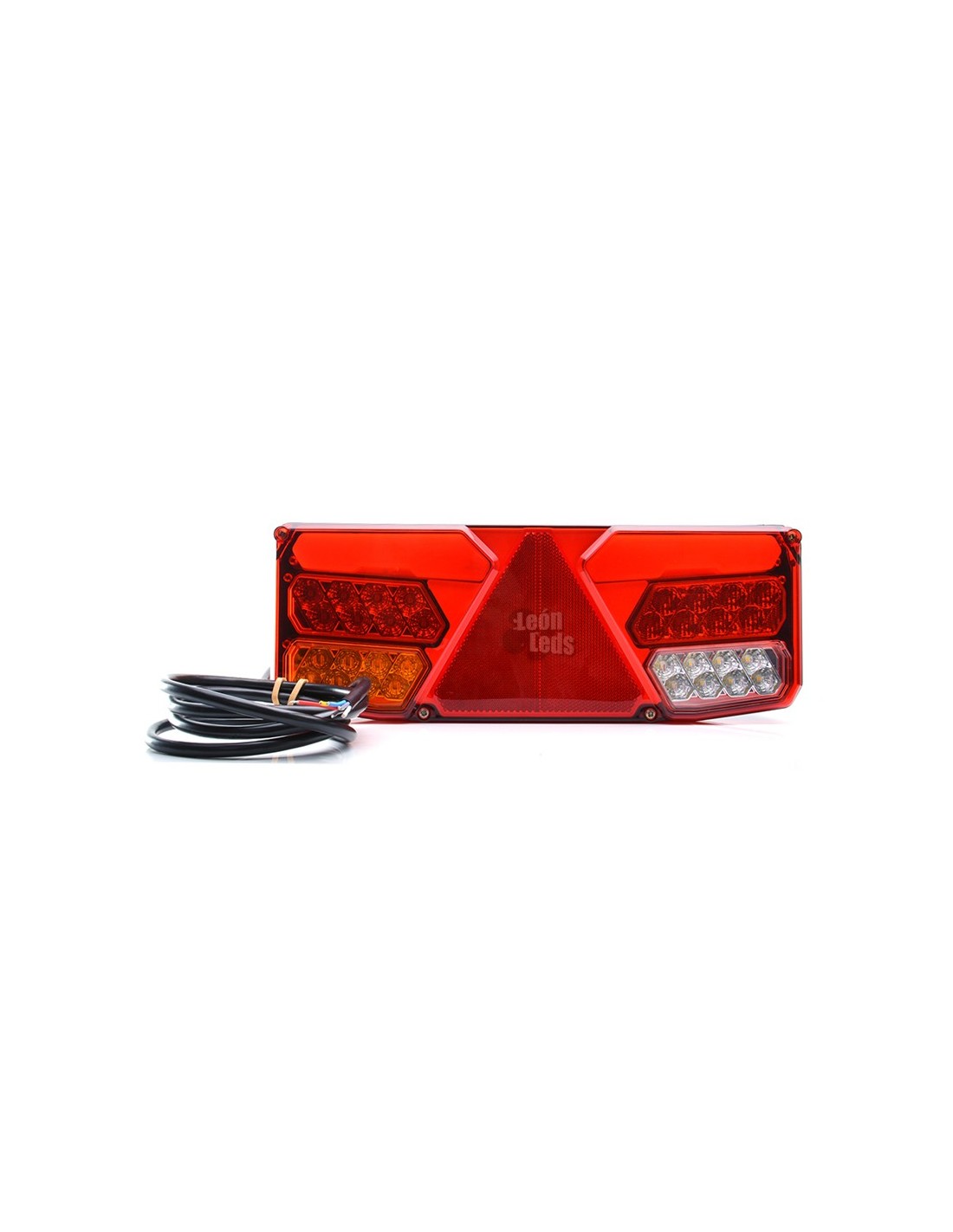 Rücklicht mit reflektierendem Dreieck, mit integrierten Widerständen, 2 Meter Kabel, verfügbar zum Auswählen zwischen zwei Spannungen, 12 Volt oder 24 Volt.