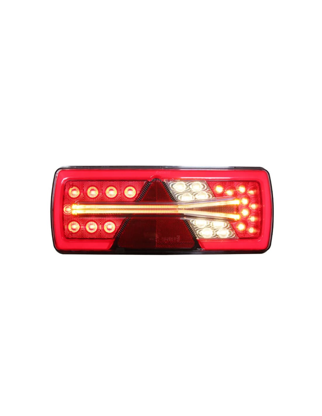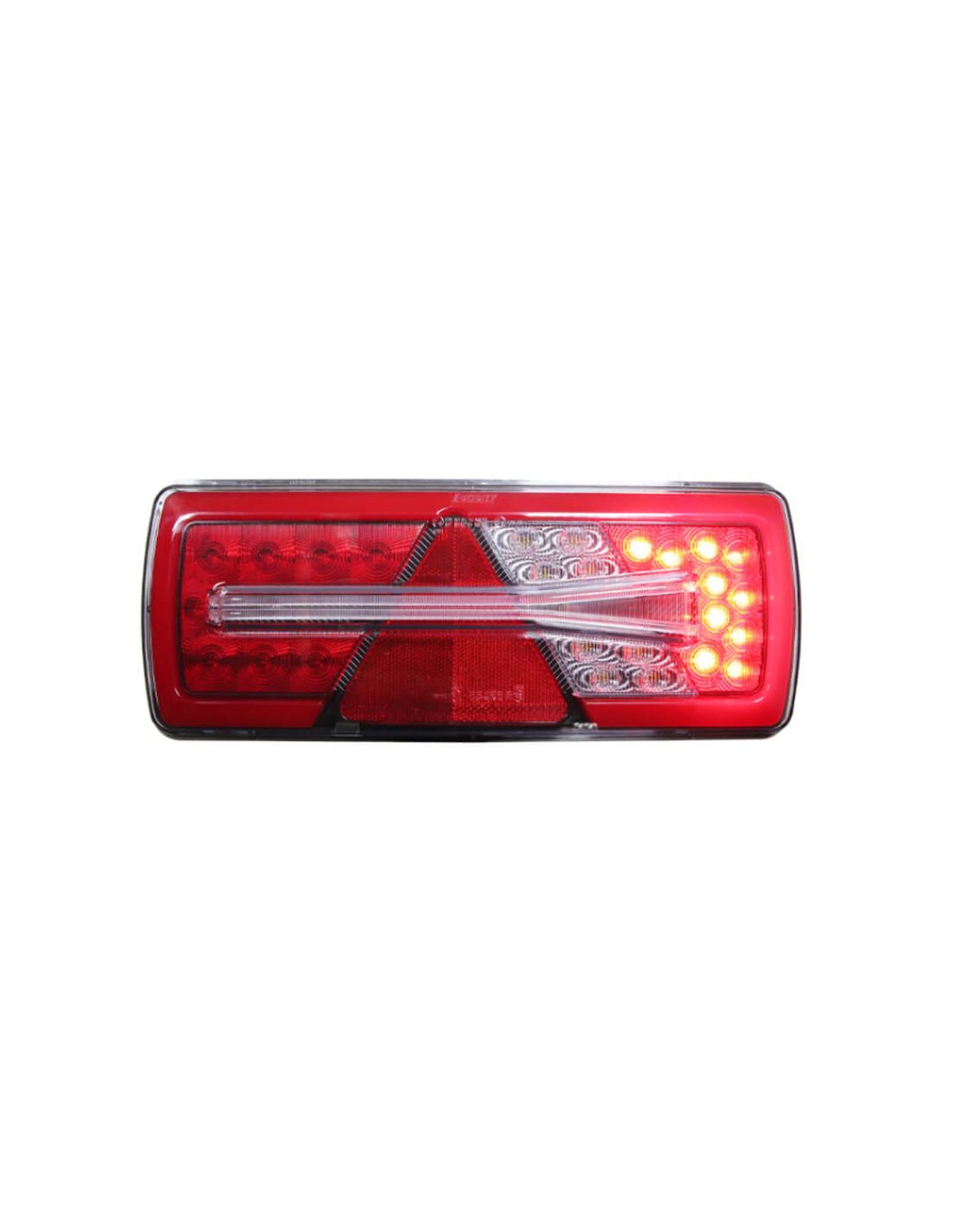 Rücklicht LED Glo Trac 24V rechts für schwere Anhänger mit 6 Funktionen: Bremslicht, Rücklicht (Glo Trac Technologie), Rückfahrscheinwerfer, Blinklicht (Light Guide), Nebelscheinwerfer und katadioptrisch. Steckverbinder AMP 7 Pins, Oberflächenmontage, IP69K und ECE R10 Zulassung. Ausgezeichnet mit Taiwan Excellence 2021.