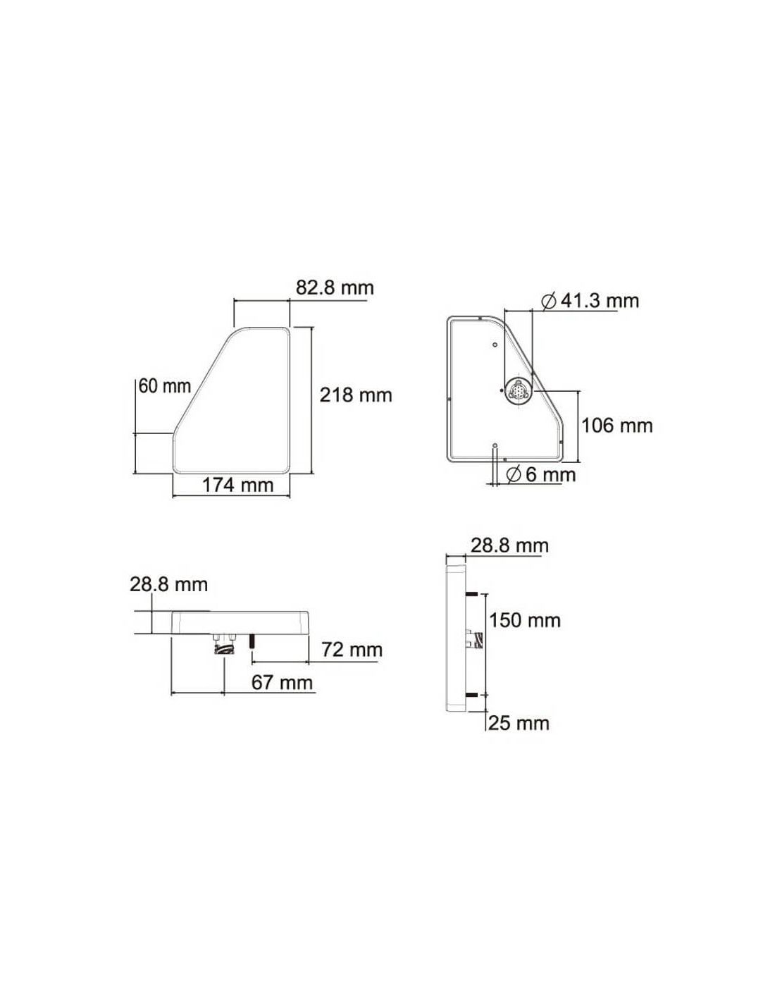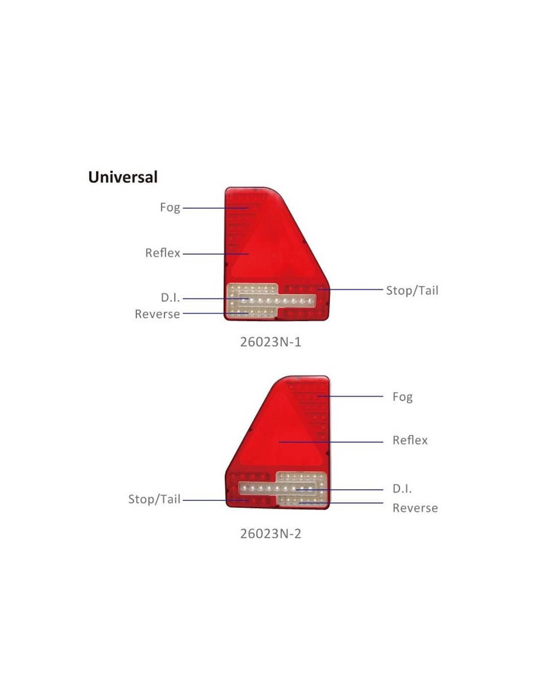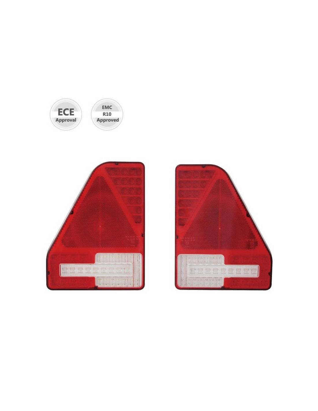 Rücklicht LED hoch mit Dreieck und Kabel mit 5-Pin-Stecker, verfügt über 6 Funktionen, kann in 12V- und 24V-Installationen installiert werden. Wähle die linke und die rechte Seite, je nach Bedarf. Stückpreis.