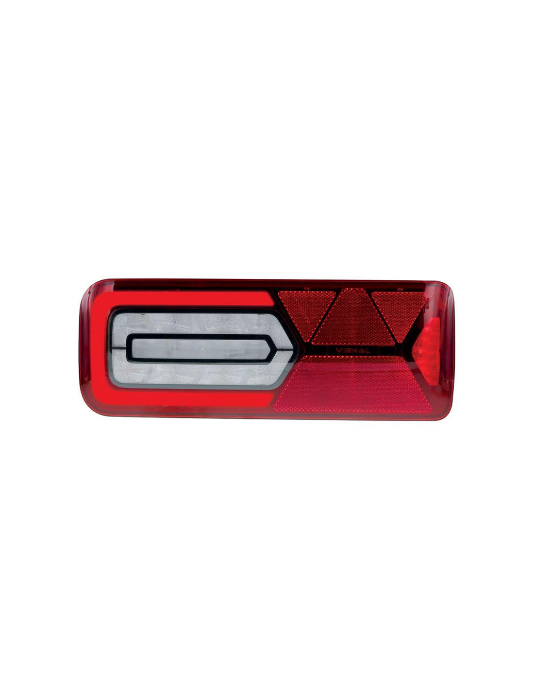 Das Rücklicht LED LC12 Black Edition der Marke Vignal mit Dreieck kann in Fahrzeugen mit 24V installiert werden, hat einen IP69K-Schutzgrad (Schutz gegen Wasser und Staub) und seine Linse und Gehäuse sind so gestaltet, dass sie Stößen und UV-Strahlen standhalten.