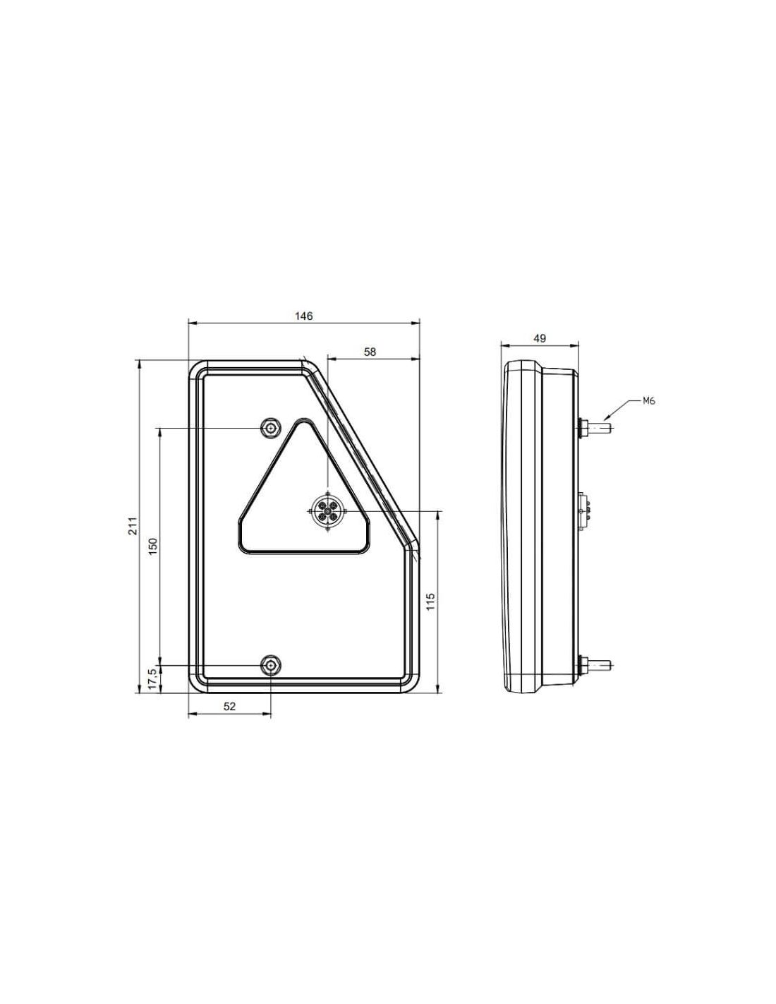 Rücklicht LED hoch mit Dreieck und 5-Pin-Stecker von der Marke Fristom-Modell FT-277, kann nur in 12V-Installationen eingebaut werden. Dieses Rücklicht LED ist homologiert, hat 2 Jahre Garantie und ist tauchfähig (IP68). Sein Temperaturbereich beträgt -40ºC bis + 55ºC.