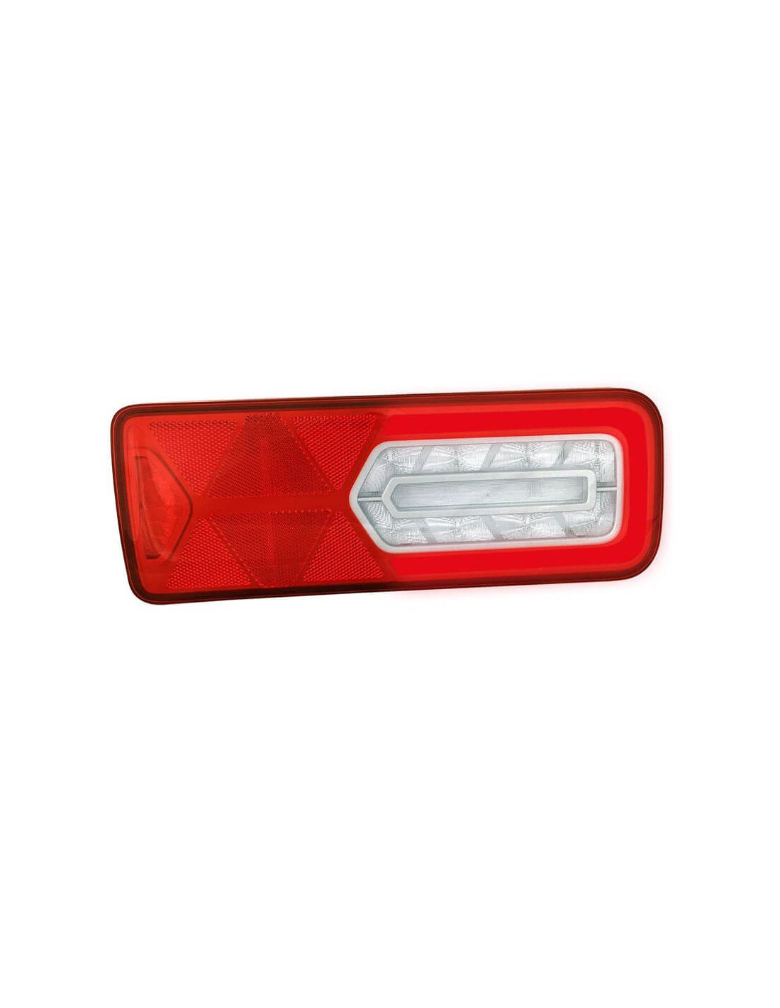 Rücklicht LED VIGNAL LC12 verfügbar in 12V und 24V, mit dynamischem Blinklicht, Bremslicht, Positionslicht, Rückfahrlicht, Nebelscheinwerfer und Katadioptrik. Schutzart IP69K und ECE-Zulassung, ideal für Lastwagen, Anhänger und Maschinen. Mit zusätzlichen Steckern. Keine Lampenausfälle, erfüllt die Norm ISO PULSE 13207-1.