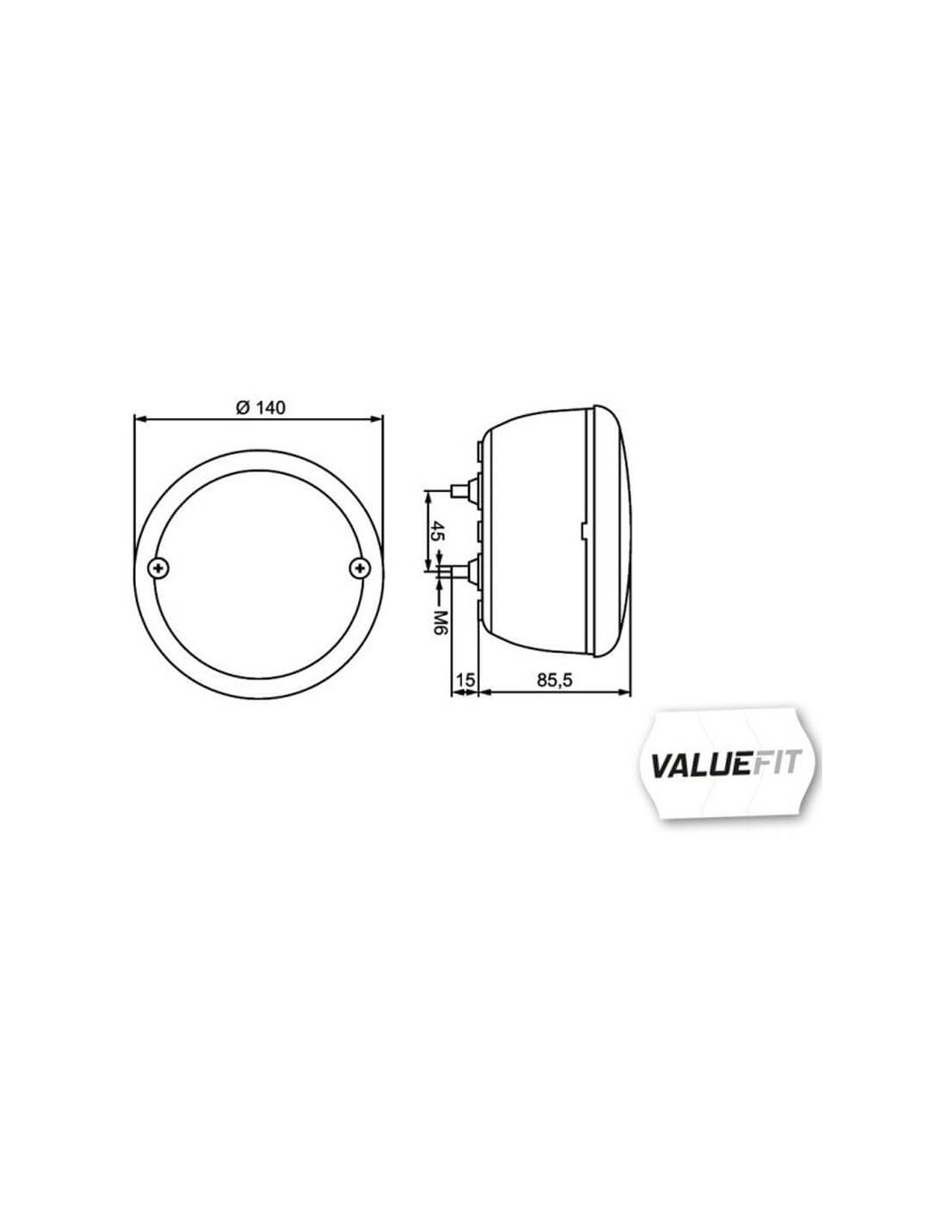 Rundes LED-Rücklicht mit 3 Funktionen geeignet für 10V bis 30V, beinhaltet 26 cm Kabel und ist vollkommen wasserdicht und tauchbar IP67. Hergestellt aus hochwertigem PMMA, hat einen Durchmesser von 14 cm und eine Tiefe von 8,55 cm.