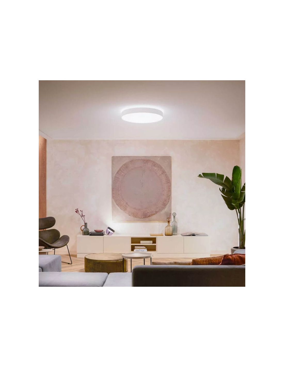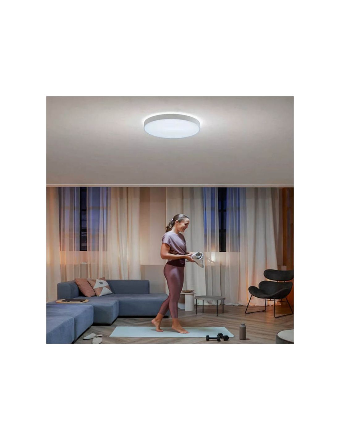 Sie wurde mit einem modernen Stil entworfen, der perfekt in Räume wie das Wohnzimmer oder das Schlafzimmer, das Büro oder das Home-Office passt. In Bezug auf die Lichtquelle bietet sie eine variable Farbtemperatur von 2200ºK (warmweiß) bis 6.500K (weiß) mit 6.100 Lumen Lichtstrom. So können Sie Ihr Licht auf die perfekte Farbtönung und Helligkeit für Ihre täglichen Bedürfnisse einstellen. Mit der Enrave-Deckenleuchte wird Ihr Tag angenehm und komfortabel, dank ihrer vier voreingestellten Lichtszenen: Energie, Konzentration, Lesen und Entspannung.