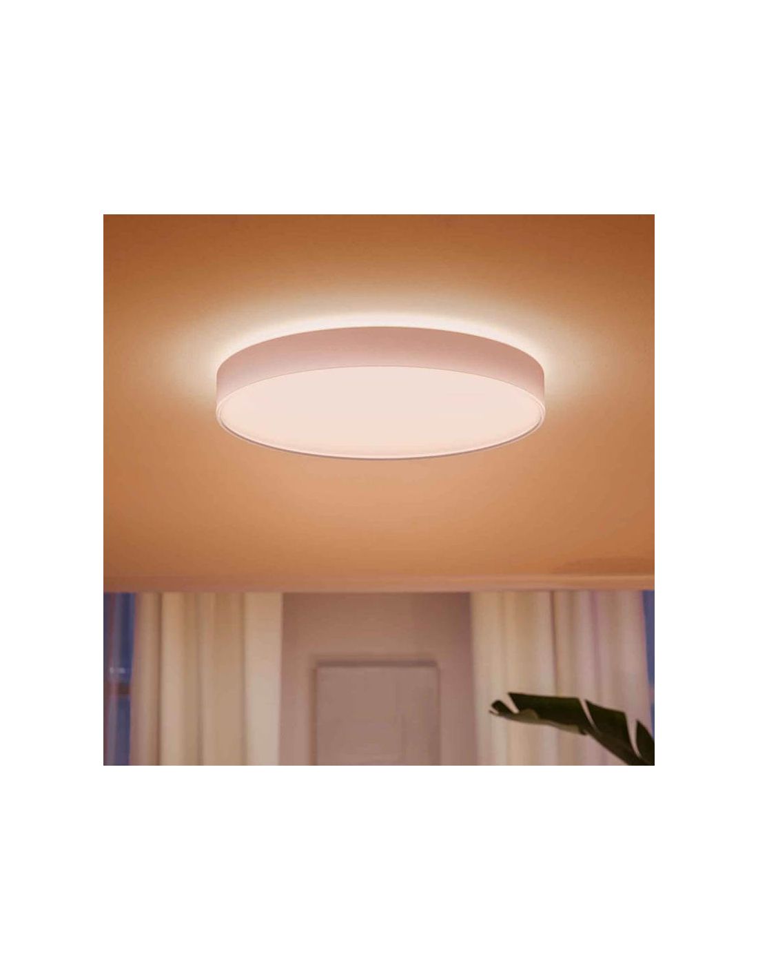 Diese XL Enrave Deckenleuchte ist mit der Hue-App dimmbar, sodass Sie ein ganzes Erlebnis genießen können, zum Beispiel durch Hinzufügen neuer intelligenter Lichter, die Sie in Ihrem Zuhause steuern können, bis zu 10 Lichter gleichzeitig über Bluetooth oder mit der Stimme (Amazon Alexa, Google-Assistenten oder einfache Sprachbefehle).