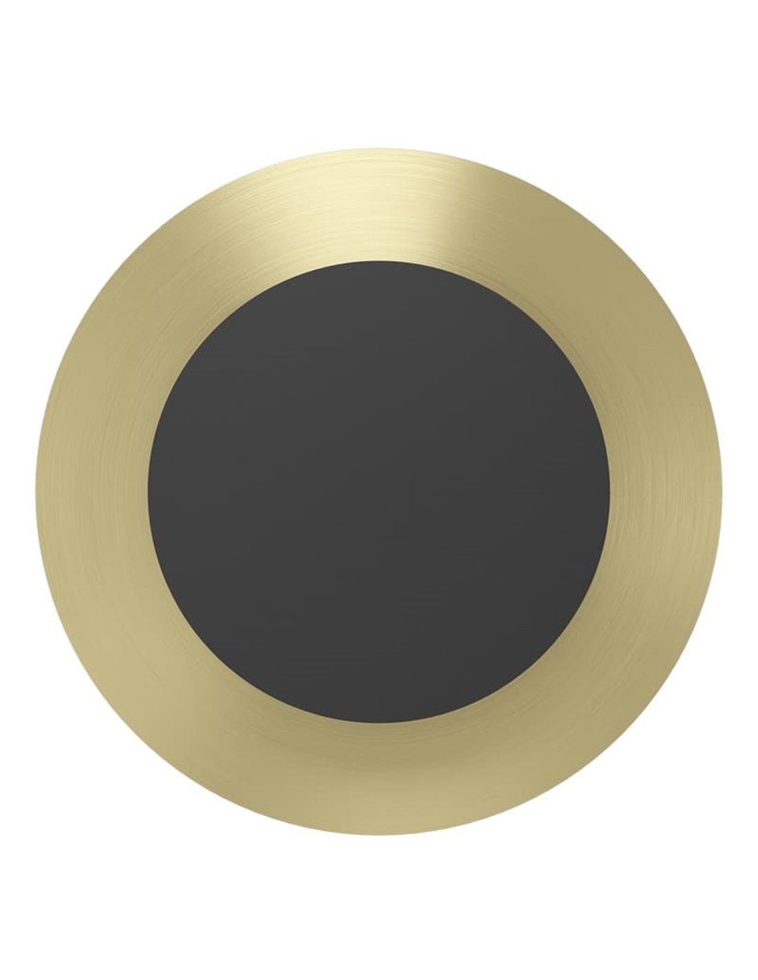 LED-Wandlampe mit modernem und elegantem Design in schwarz und gebürstetem Messing mit integrierter, hocheffizienter Beleuchtung. Bietet eine warm und angenehme Beleuchtung (3000 K, 1300 lm, 11 W), ideal für Wohnzimmer, Schlafzimmer oder Flure. Zeitloses Design, das sich in verschiedene Innenräume integriert. Abmessungen: Ø240 mm · Tiefe 60 mm.