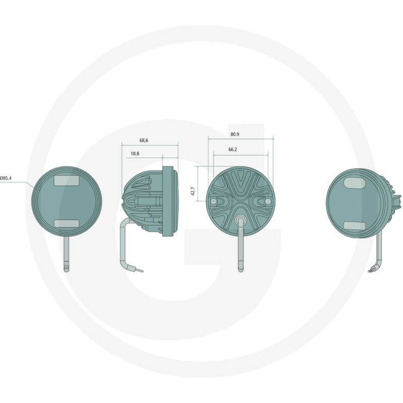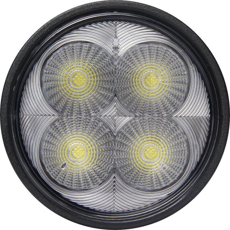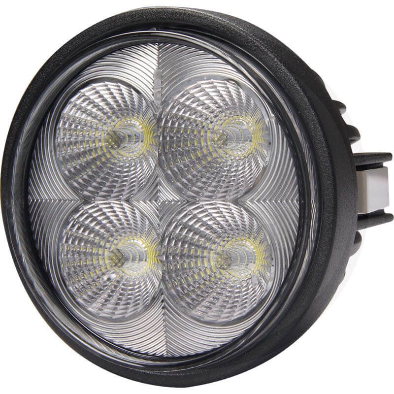 Runder LED-Scheinwerfer mit einer Leistung von 40W, theoretischer Lichtintensität von 4.000Lm und effektiver von 2.392Lm. Enthält einen 2-poligen Deutschstecker für die Installation, ist vollständig wasserdicht IP69K und hat ECE R10 CISPR25 und ist für Spannungen von 12 und 24V geeignet, die Optik ist Arbeitslicht. Dieses Modell von LED-Scheinwerfer ist perfekt für die Frontseitbeleuchtung der Fendt-Traktoren Modelle Serie 500, 700, 800, 900 und 1000.
