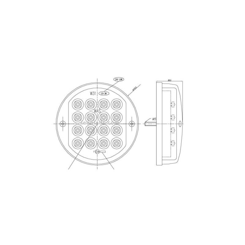 Runder LED-Pilot mit 3 Funktionen, Position, Brems- und Blinklicht, geeignet für die Installation bei 12V und 24V, hat einen Durchmesser von 11,5 cm und eine Dicke von nur 3,85 cm. Zur Installation sind 0,75 cm Kabel enthalten, er ist völlig wasserdicht und tauchfähig und ist homologiert, 2a R S1.