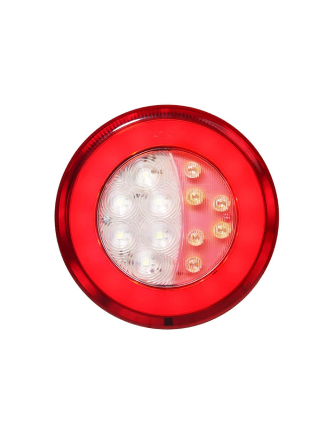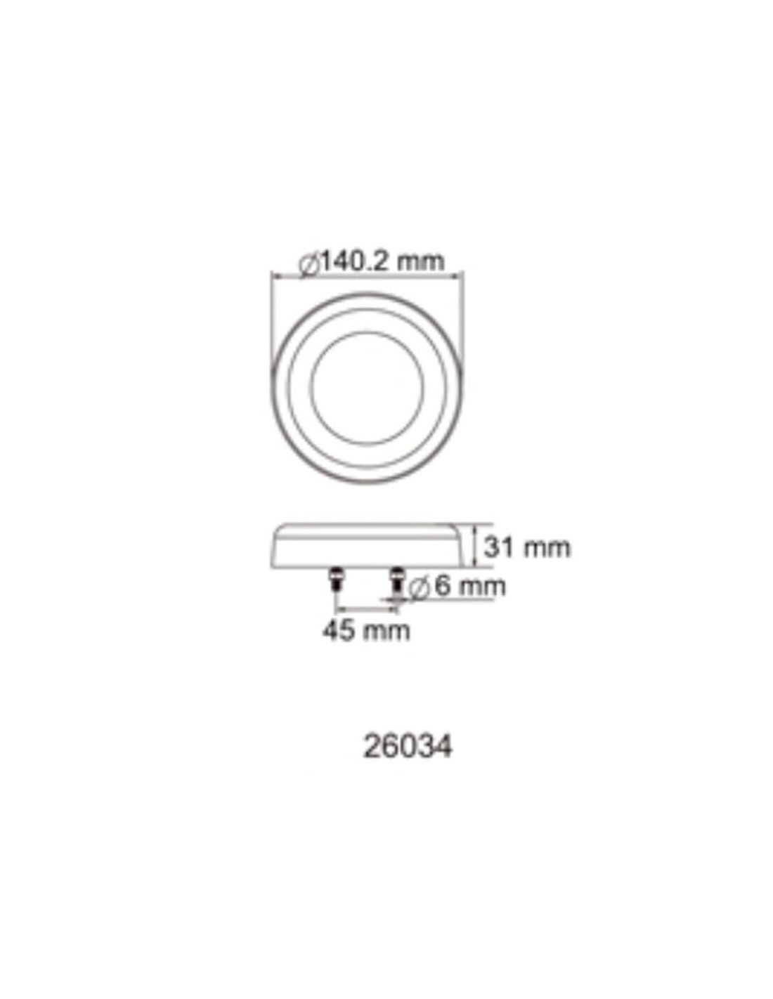 Runder LED-Rückscheinwerfer mit 3 Funktionen, geeignet für 12V und 24V Installationen, das Standlicht hat einen Neon-Effekt mit 23 cm Kabel, dieser LED-Rückscheinwerfer hat einen Durchmesser von 14 cm und eine Tiefe von nur 3,1 cm. Vollständig wasserdicht und tauchfähig.