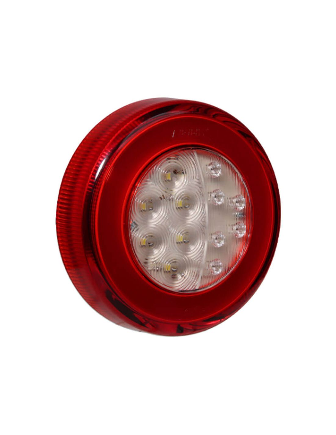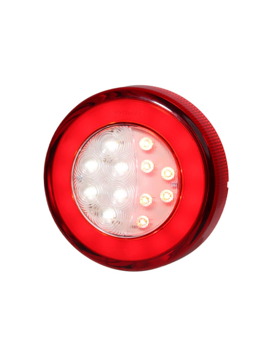 Runder LED-Rückscheinwerfer der Marke Lucidity mit 3 Funktionen, mit 23 cm Kabel für die Installation, Modell mit Neon-Standlicht, Brems- und Rückfahrtlicht. Dieses Modell des Rückscheinwerfers ist wasserdicht und tauchfähig und ist für 12V und 24V geeignet.