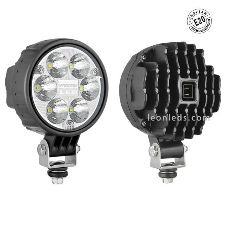 Der runde LED-Scheinwerfer von Wesem mit europäischer Zulassung E20 eignet sich zur Installation an 4X4-Fahrzeugen, Offroad, Lkw, Kränen... Es ist ein stilvoller und robuster Scheinwerfer mit einer unteren Halterung und 12,5 Lichtpunkten für die Zulassung.