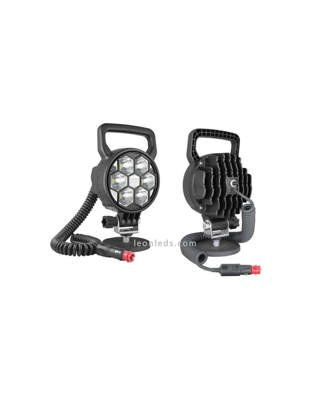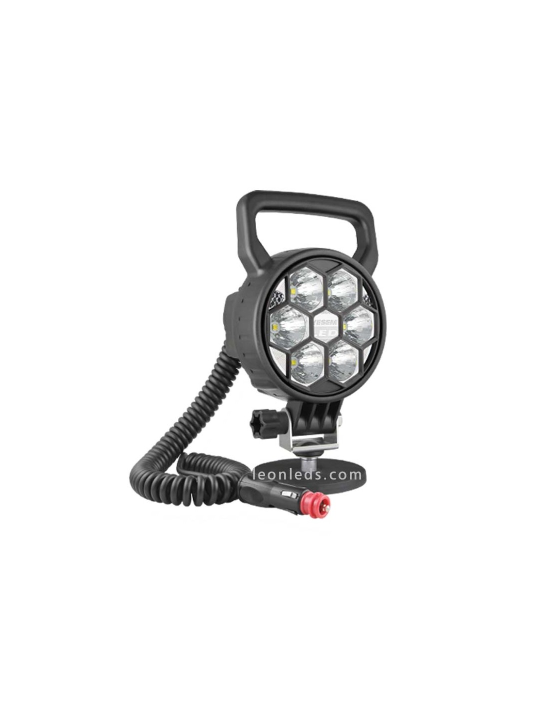 LED-Arbeitsscheinwerfer mit Schalter und Zigarettenanzünderanschluss mit 8 Metern spiralförmigem Kabel, mit 3 unterschiedlichen Leistungen, 2 verfügbaren Optiken und mit oder ohne Griff.
