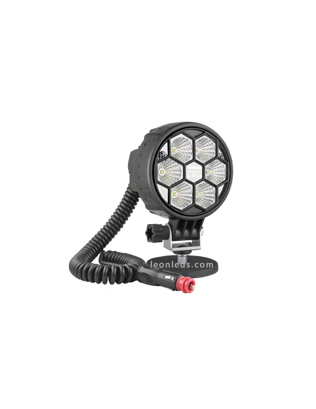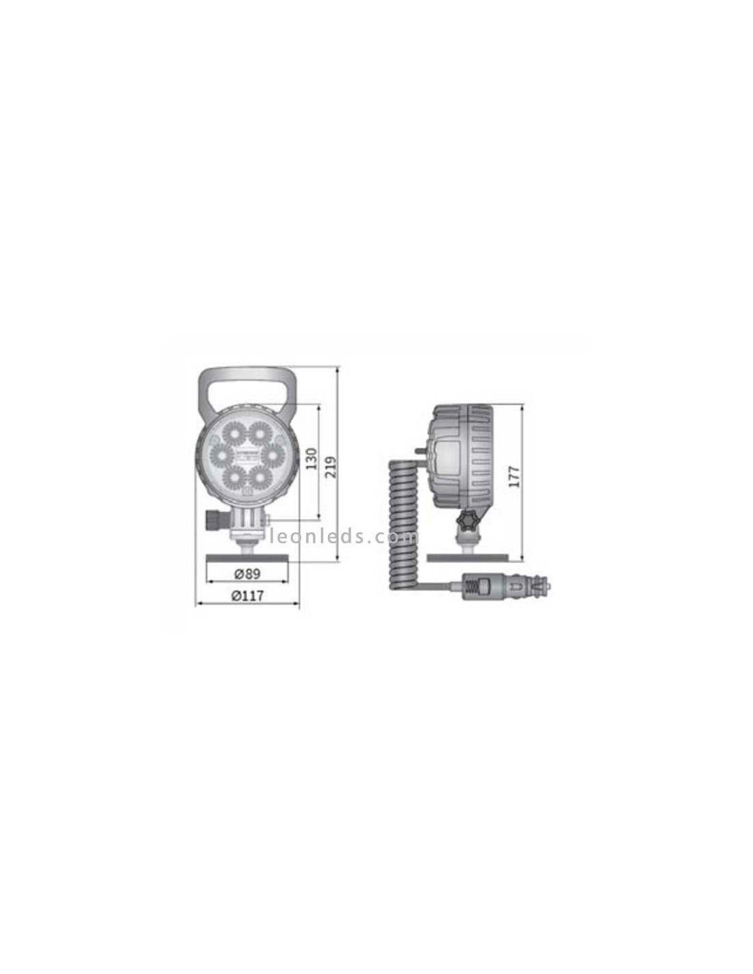 LED-Arbeitsscheinwerfer mit Schalter und Magnetbasis mit einem 8 Meter spiralisierten Kabel und Zigarettenanzünderanschluss. Sie können zwischen den 3 verfügbaren Leistungen wählen: 29W, die eine Lichtintensität von 2.500Lm bietet, 25W, die 2.000Lm bietet, und 24W, die 1.500Lm bietet. In beiden Fällen sind 6 LED-Chips der Marke Cree und ein Schutz für die Polycarbonat-Lampe in schwarz enthalten, den wir auf Wunsch abnehmen können. Der Lichtstrahlwinkel ist in 50º, breitem Sichtfeld, und 4º, Fernscheinwerfer, erhältlich.