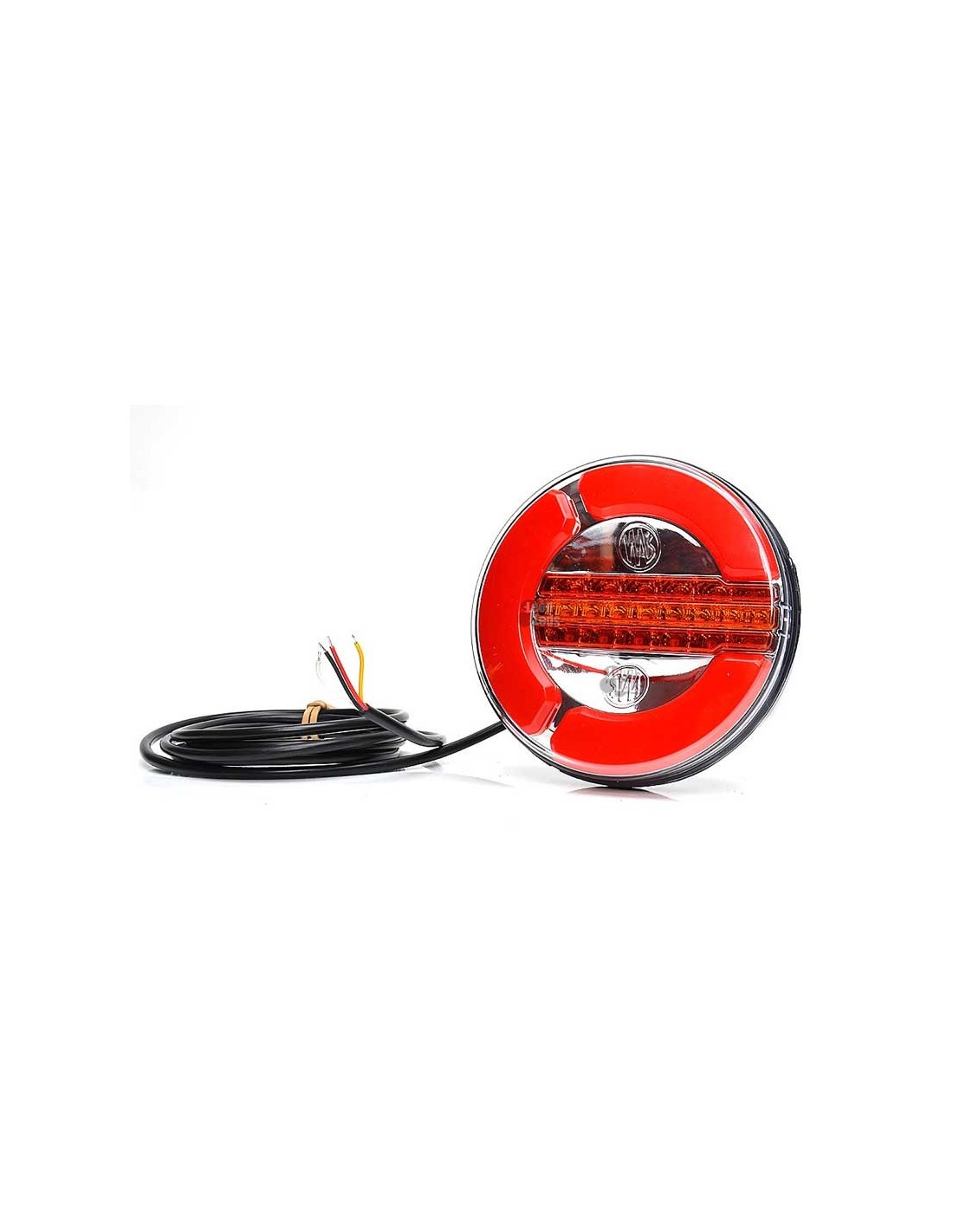 Rundes Rücklicht LED geeignet für Spannungen von 12 Volt und 24 Volt mit 3 Funktionen und dynamischem Blinker zur Installation auf der Oberfläche mit zwei Schrauben mit einem Durchmesser von 14,2 cm. Dieses Modell hat keine Seite, es kann beliebig auf der linken oder rechten Seite installiert werden. Genehmigtes LED-Rücklicht, völlig wasserdicht und tauchfähig.