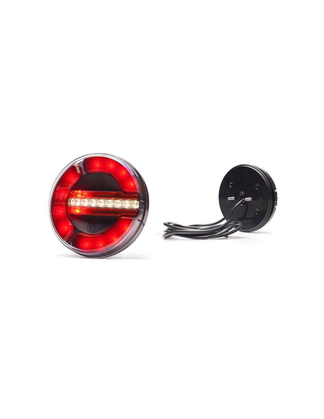 Dieses multifunktionale runde LED-Rücklicht bietet eine robuste, langlebige und ästhetische Lösung zur Signalgebung von Nutzfahrzeugen, Anhängern oder Landmaschinen. Dank seines kompakten Designs und des Gehäuses in Schwarz bietet es eine moderne und dezente Optik.