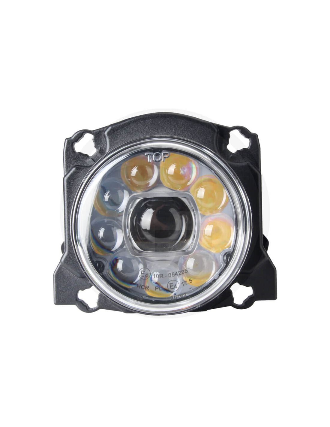 Sein robustes Design mit Aluminiumgehäuse und Polycarbonatlinse widersteht Stößen, Vibrationen und schwierigen Bedingungen, mit IP66 / IP6K9K Schutz gegen Staub, Wasser und Druckstrahlen. Zudem verfügt es über eine elektromagnetische Verträglichkeit CISPR 25 Klasse 5, um Interferenzen mit anderen elektronischen Systemen des Fahrzeugs zu vermeiden.