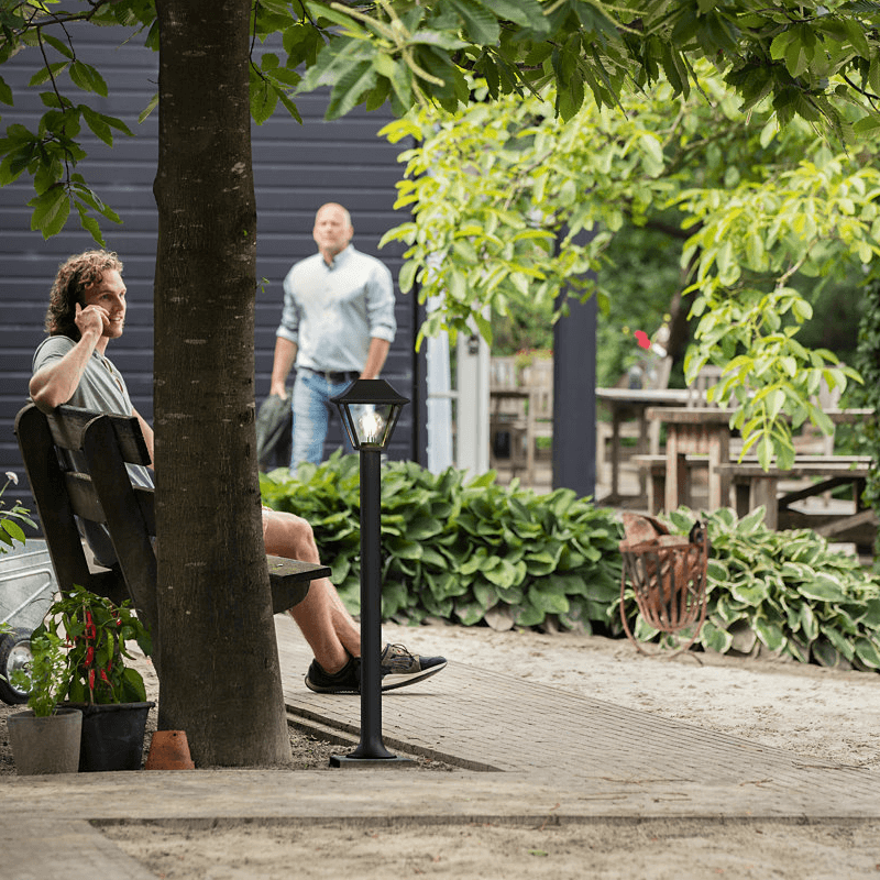 Diese Alpenglow-Postlampe von Philips mit schwarzem Finish wird alle Blicke auf sich ziehen, dank ihres einfachen, aber minimalistischen Designs mit einem Heritage-Siegel. Sie ist aus hochwertigem Aluminium und synthetischen Materialien hergestellt und ihre Abmessungen betragen: eine Höhe von 89,9 cm, eine Länge von 17,4 cm und die gleiche Breite mit einem Gewicht von 1,4 kg.