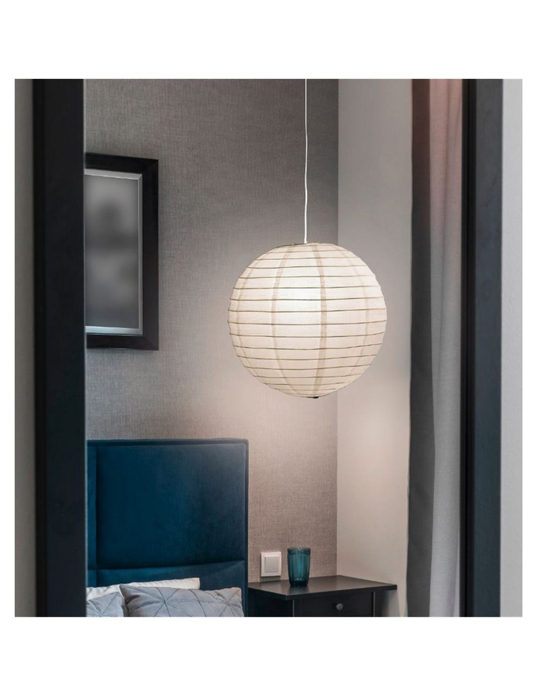 Der weiße PAPER-Schirm mit Ø40cm ist perfekt, um deine eigene japanische Hängelampe zu kreieren oder deine Beleuchtung mit einem zeitlosen und natürlichen Stil zu erneuern. Hergestellt aus hochwertigem Papier, ermöglicht er ein warmes und diffuses Licht, ideal für Wohnzimmer, Schlafzimmer oder Flure. Kompatibel mit E27-Fassung (Glühbirne nicht enthalten).