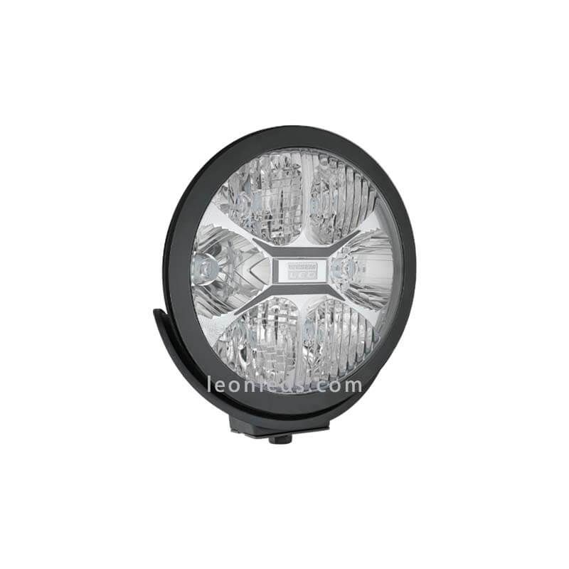 Der schwarze LED-Scheinwerfer mit großer Reichweite Modell FERVOR 220 der Marke Wesem, ist ein eleganter und robuster Scheinwerfer, der ideal für Lkw, SUVs oder jedes andere Fahrzeug ist. Er ist vollständig homologiert gemäß der europäischen Norm E20 und verfügt über die homologierten Codes (084) HR und A sowie über 25 Lichtpunkte. Er bietet eine Leistung von 27W für das Fernlicht und 3W für das Standlicht. Dieses Fervor-Modell ist sowohl an der Rückseite als auch am dekorativen Rahmen an der Vorderseite schwarz.
