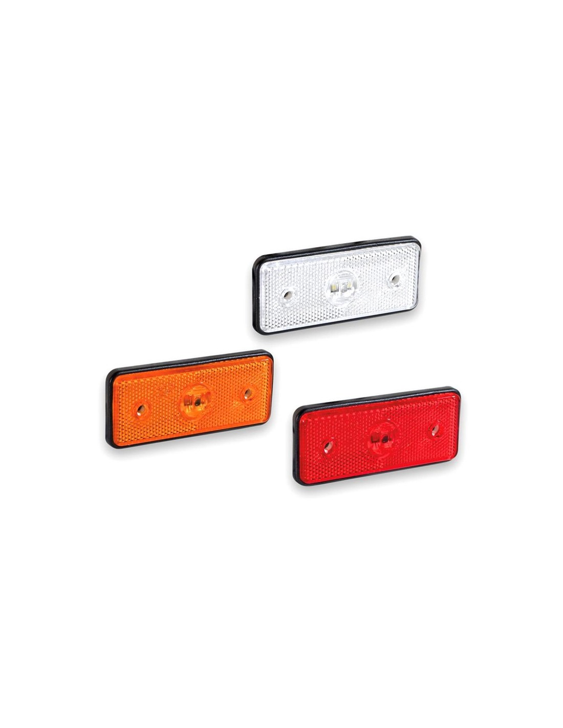 Diese LED-Leuchte ist rechteckig mit abgerundeten Ecken. Der Chip ist in der Mitte des reflektierenden Lampenschirms untergebracht und ist erhältlich in Weiß für die Vorderseite, Rot für die Rückseite oder Amber für die Seite. Diese LED-Leuchten können mit oder ohne Halterung und mit einem halben Meter Kabel ausgewählt werden.