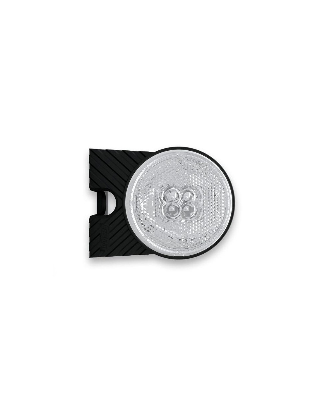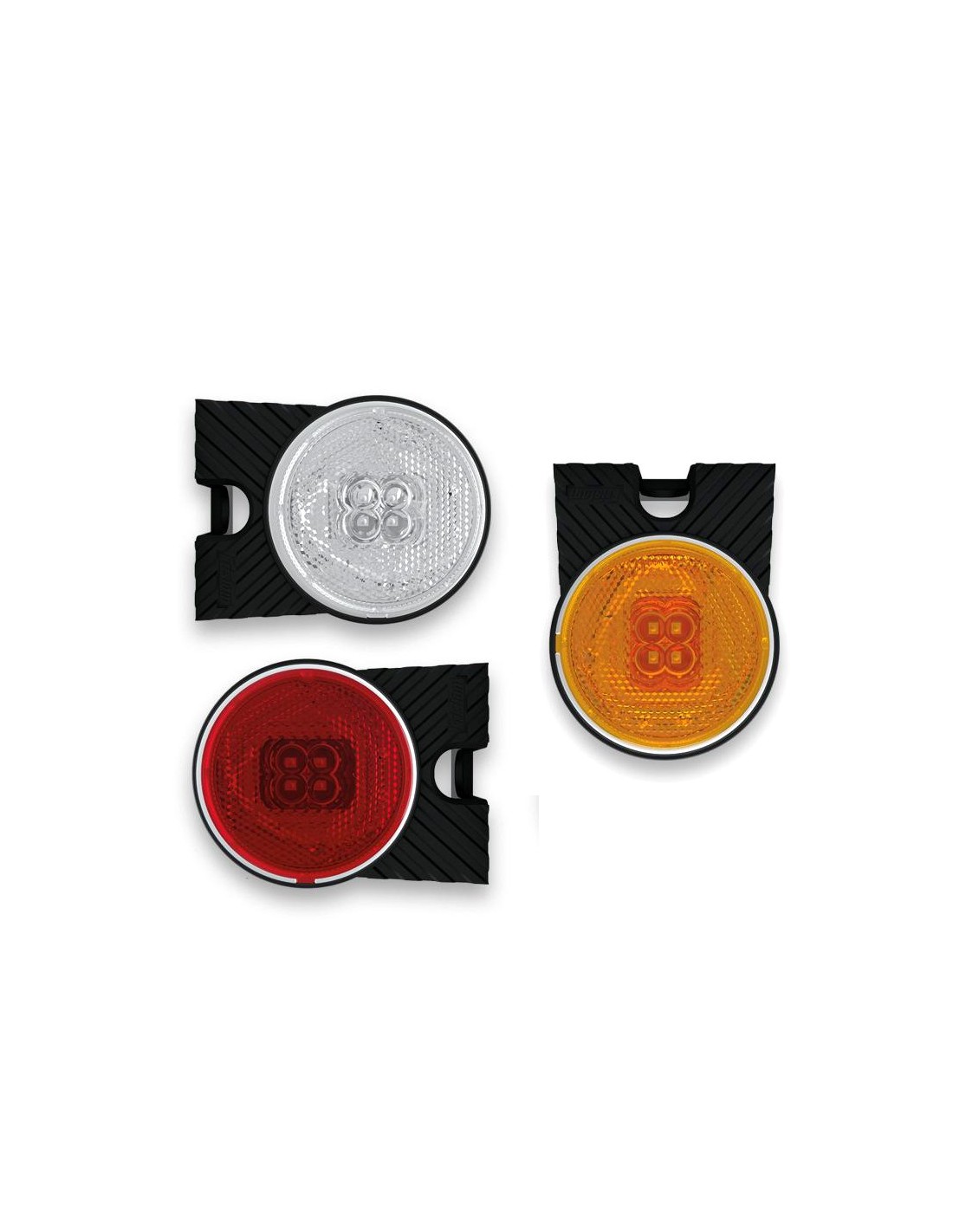 Dieser LED-Seitenlichter ist rund mit 4 Chips in der Mitte der Linsen. Der Rest der Linse bleibt als retroreflektierend und ist in Weiß für den vorderen Einbau, rotem Licht für hinten oder bernsteinfarben für die Seite erhältlich. Diese LED-Lichter sind mit Halterung und einem halben Meter Kabel für den elektrischen Anschluss verfügbar.