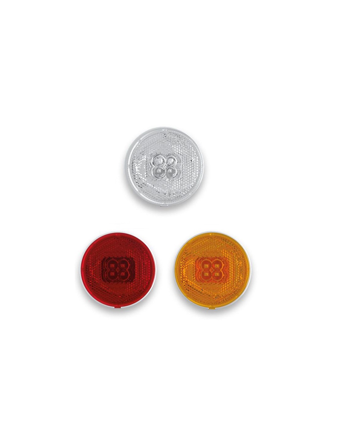 Dieses LED-Licht ist rund mit 4 Chips in der Mitte der Abdeckung. Der Rest der Abdeckung bleibt katadioptrisch und ist erhältlich in Weiß für die Installation an der Vorderseite, rotes Licht für die Rückseite oder Amber für die Seite. Diese LED-Lichter sind für die Oberflächenmontage erhältlich und mit einem halben Meter Kabel für die elektrischen Verbindungen ausgestattet.