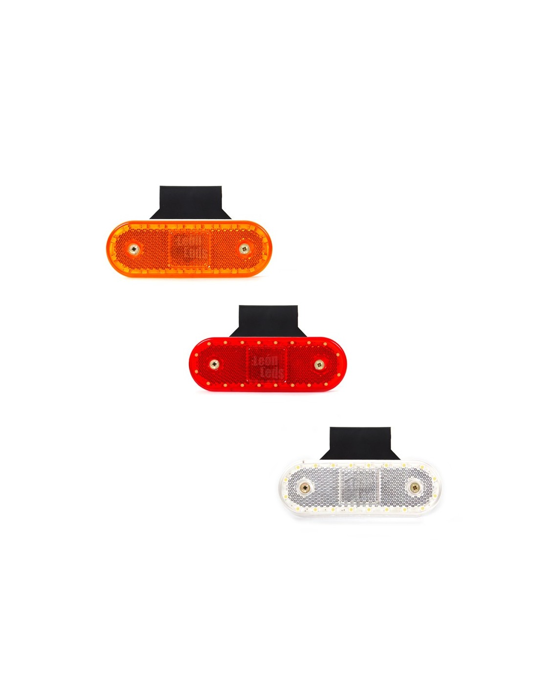 Dieses LED-Pilotlicht ist rechteckig mit abgerundeten Enden, die Chips sind über die gesamte Länge des Pilotlichts angebracht, wobei der mittlere Teil nur reflektierend bleibt und es ist verfügbar in weiß für vorne, rot für hinten oder amber seitlich. Diese LED-Pilotlichter sind mit Halterung und Kabel erhältlich.