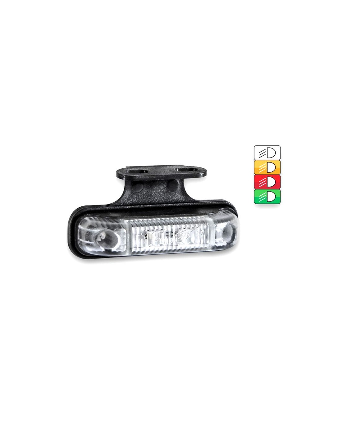 Positions- oder Seiten-LED-Leuchten rechteckig mit transparentem Lampenschirm. Sie sind in 3 Farben erhältlich: Amber für die Seite, Rot für die Rückseite oder Weiß für die Vorderseite. Die Chips erzeugen das Licht in der gewählten Farbe.
