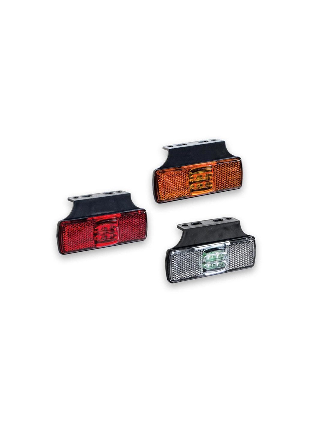 Diese LED-Leuchte ist rechteckig mit abgerundeten 4 Ecken, die 4 Chips sind in der Mitte der Abdeckung untergebracht, sodass der zentrale Teil nur katadioptrisch bleibt und sie ist erhältlich in Weiß für die Vorderseite, Rot für die Rückseite oder Amber für die Seite. Diese LED-Leuchten sind mit Halterung und Kabel erhältlich.