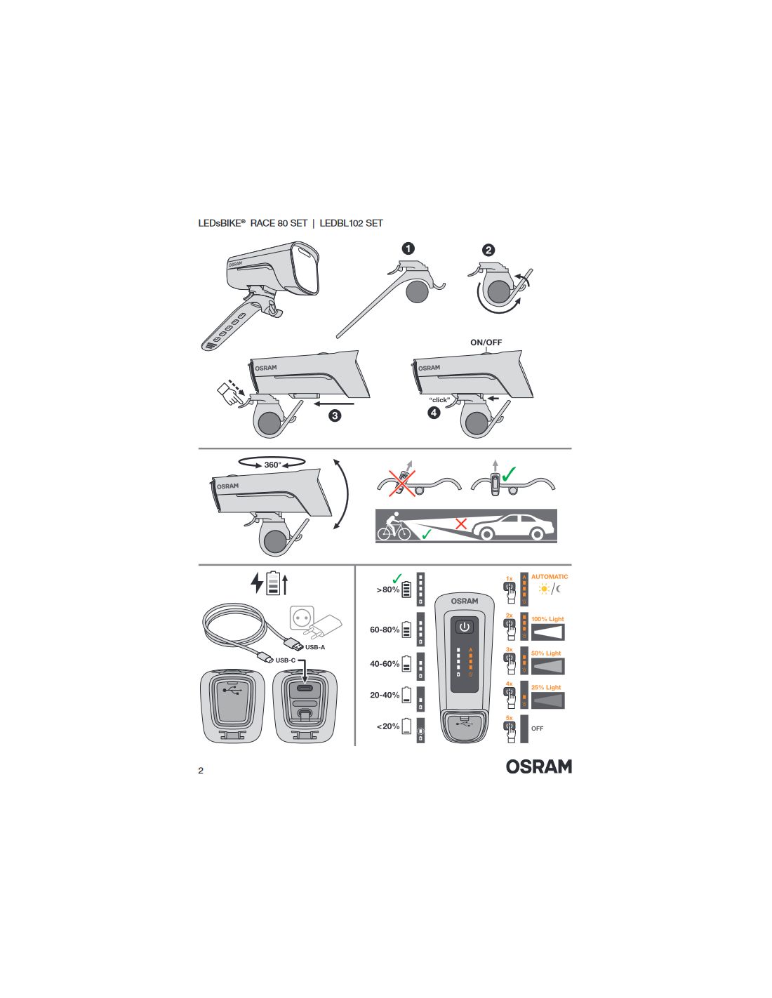 - Qualitätsgarantie: Genieße die Sicherheit einer 2-jährigen Garantie, die von OSRAM für alle LEDBL102 SET / LEDsBIKE® RACE 80 SET Fahrradlichter angeboten wird.