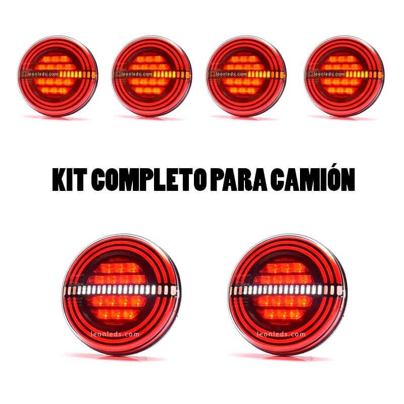 Set von 6 runden LED-Rücklichtern, geeignet für 12 Volt und 24 Volt. Das Set besteht aus 6 runden LED-Rücklichtern, 4 davon mit 3 Funktionen (Position, progressives Blinklicht und Bremslicht) und 2 weiteren mit 3 Funktionen (Nebelscheinwerfer, Rückfahrlicht und Position), mit Nebelscheinwerfer in Hochleistung mit 2 Chips.